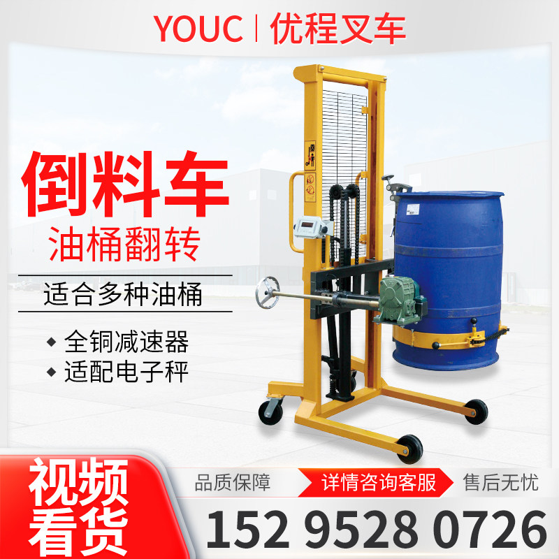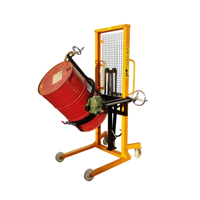 Используемый масляный ствол поднимает автомобильные стволы. Загрузка и разгрузка грузовиков, тяжелый жидкий напряжение жидко