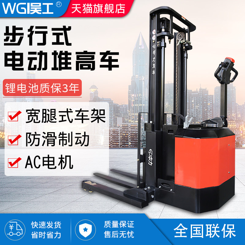 1,4/1,8 тонны пешеходной электрической кучи с высокой грузоподъемностью с высокой грузоподъемностью, электрическая электроэнергетическая батарея Загрузка и разгрузка стека.