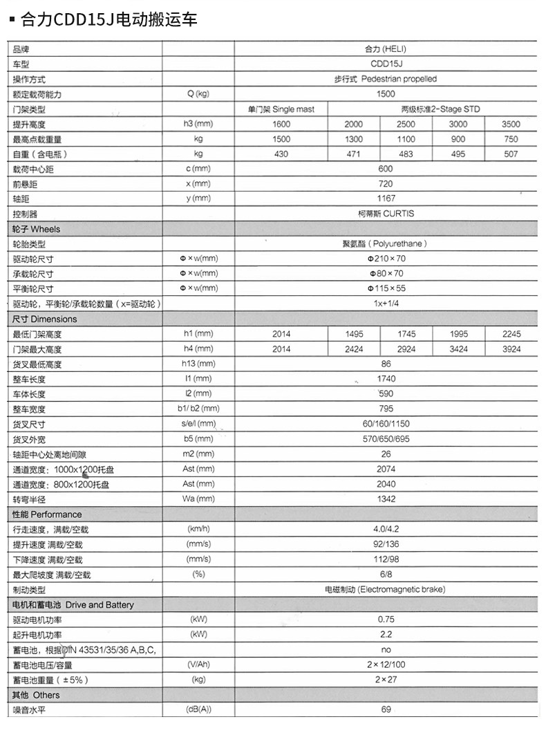 Hei Li Электрическая плита высокая станция гидравлический вилочный погрузчик 1.5 -тонный малый труд CDD15J CDD15J Стек аккумулятора