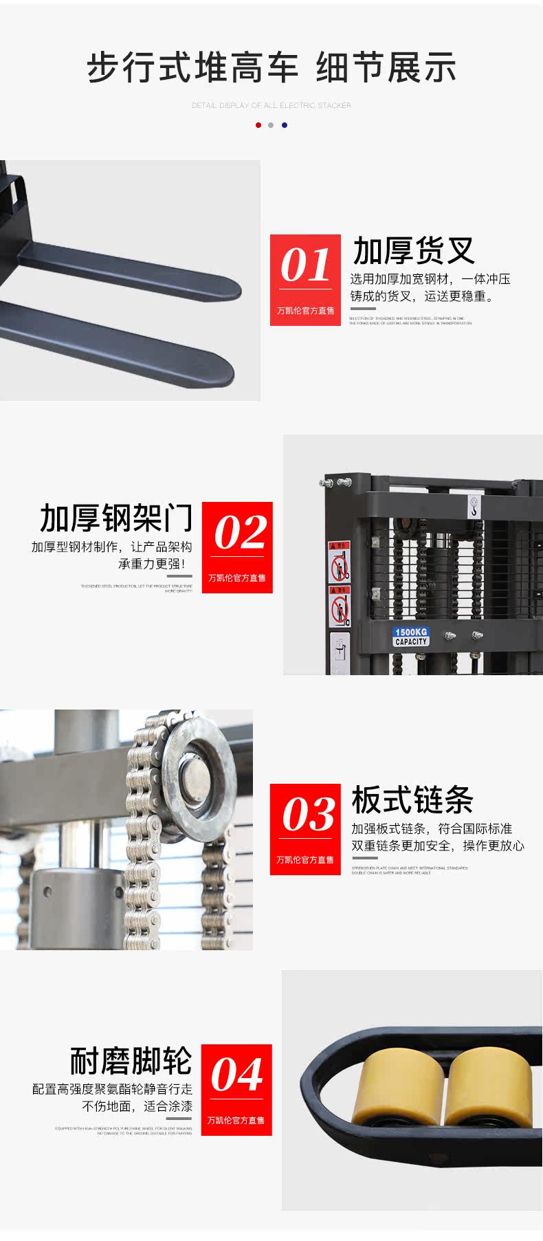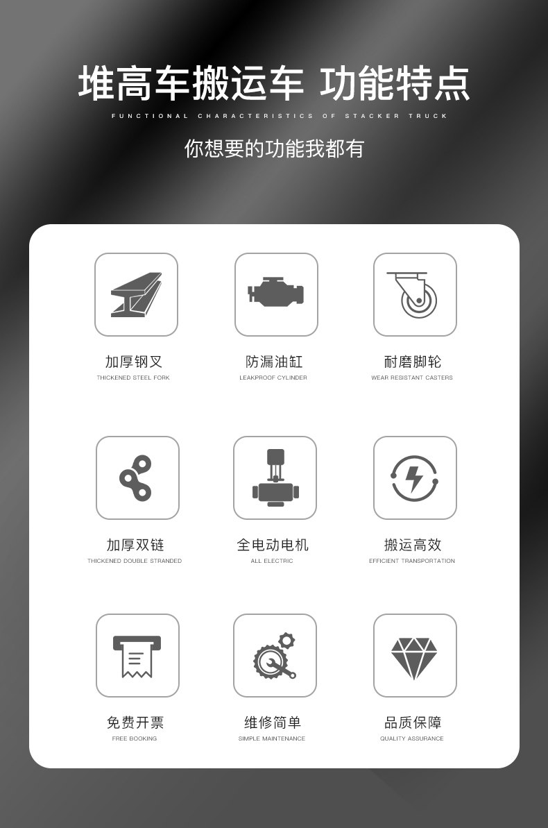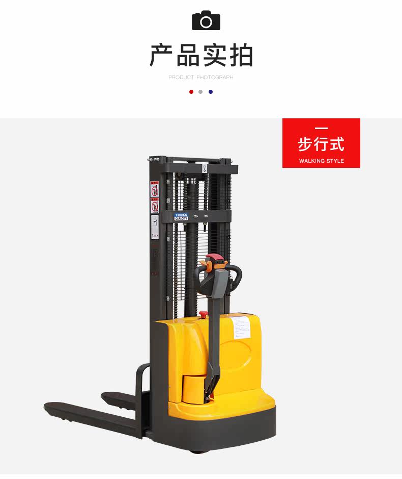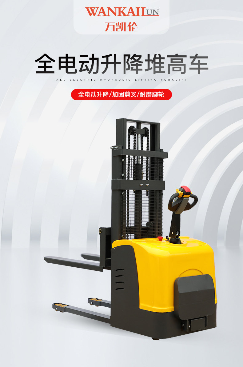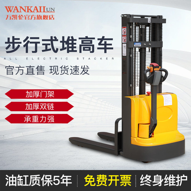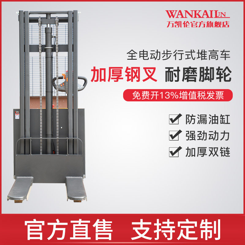 万凯伦 Полная электрическая вилочная погрузчика 2 -я гидравлическая свай высокий автомобиль 1 тонна Небольшая станция Движение автономной лопатой батареи