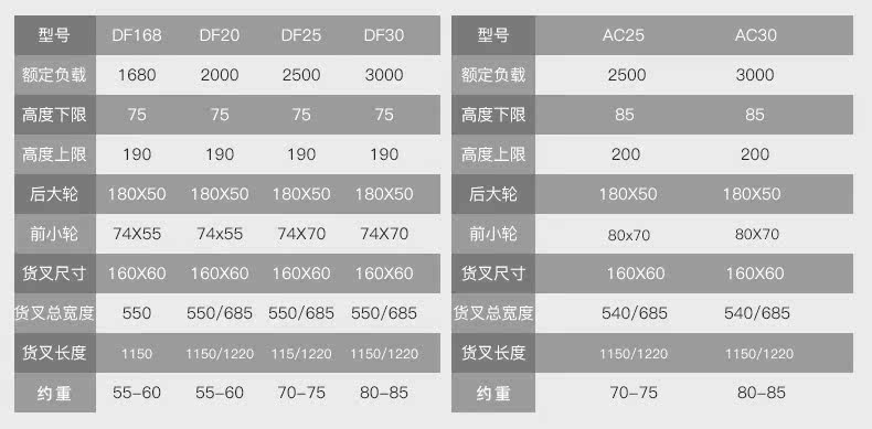 - DF2,5 Тонн ширина 685*Длина вилки 1220
