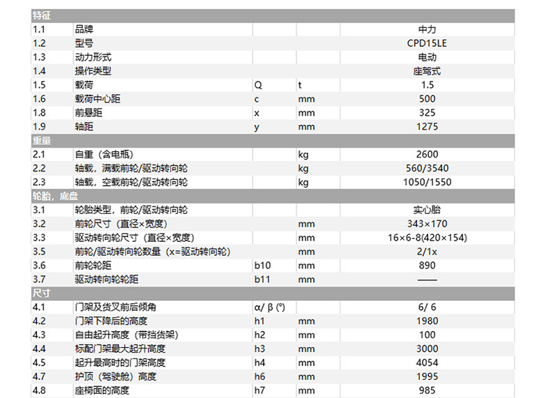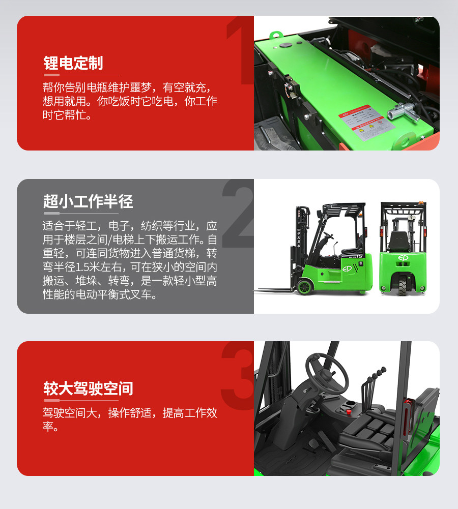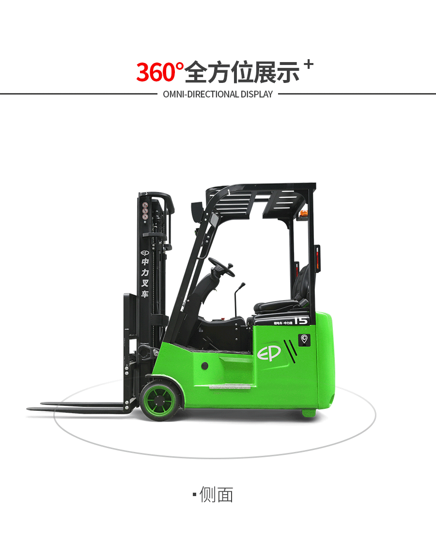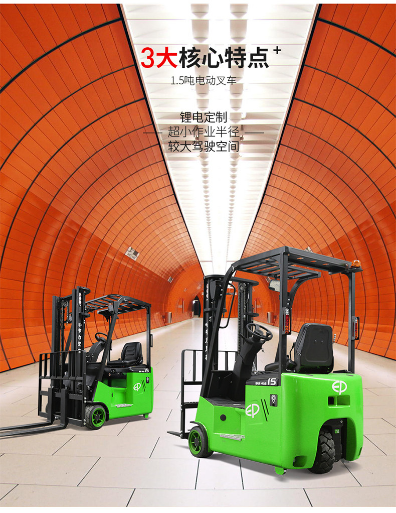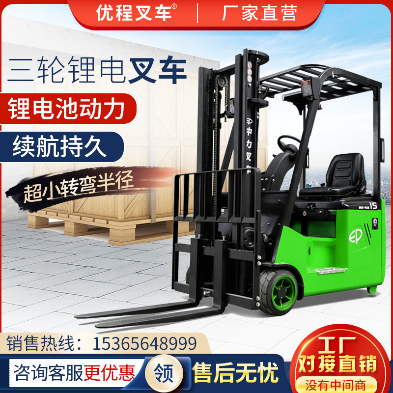 Zhongli 1,5 тонны трех -фульпрокат -электрических вилочных погрузчиков Загрузка батареи и разгрузки
