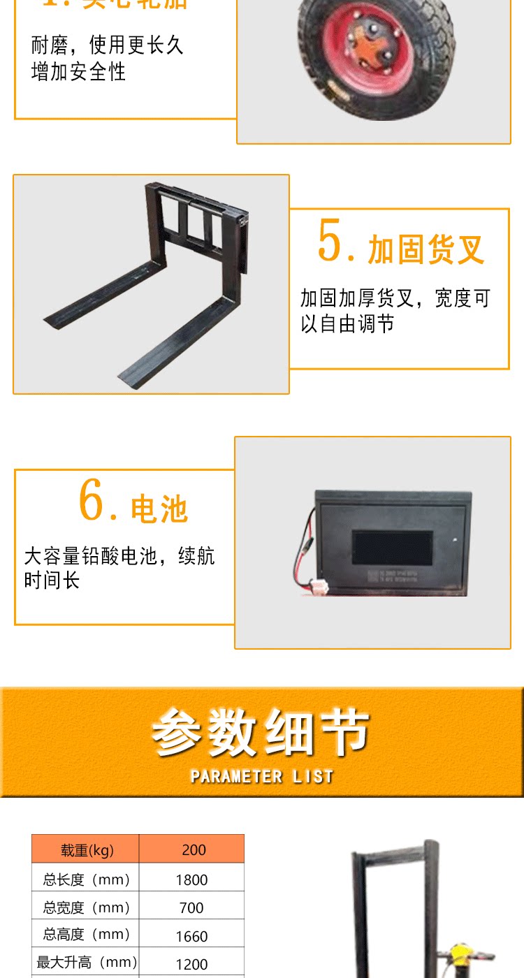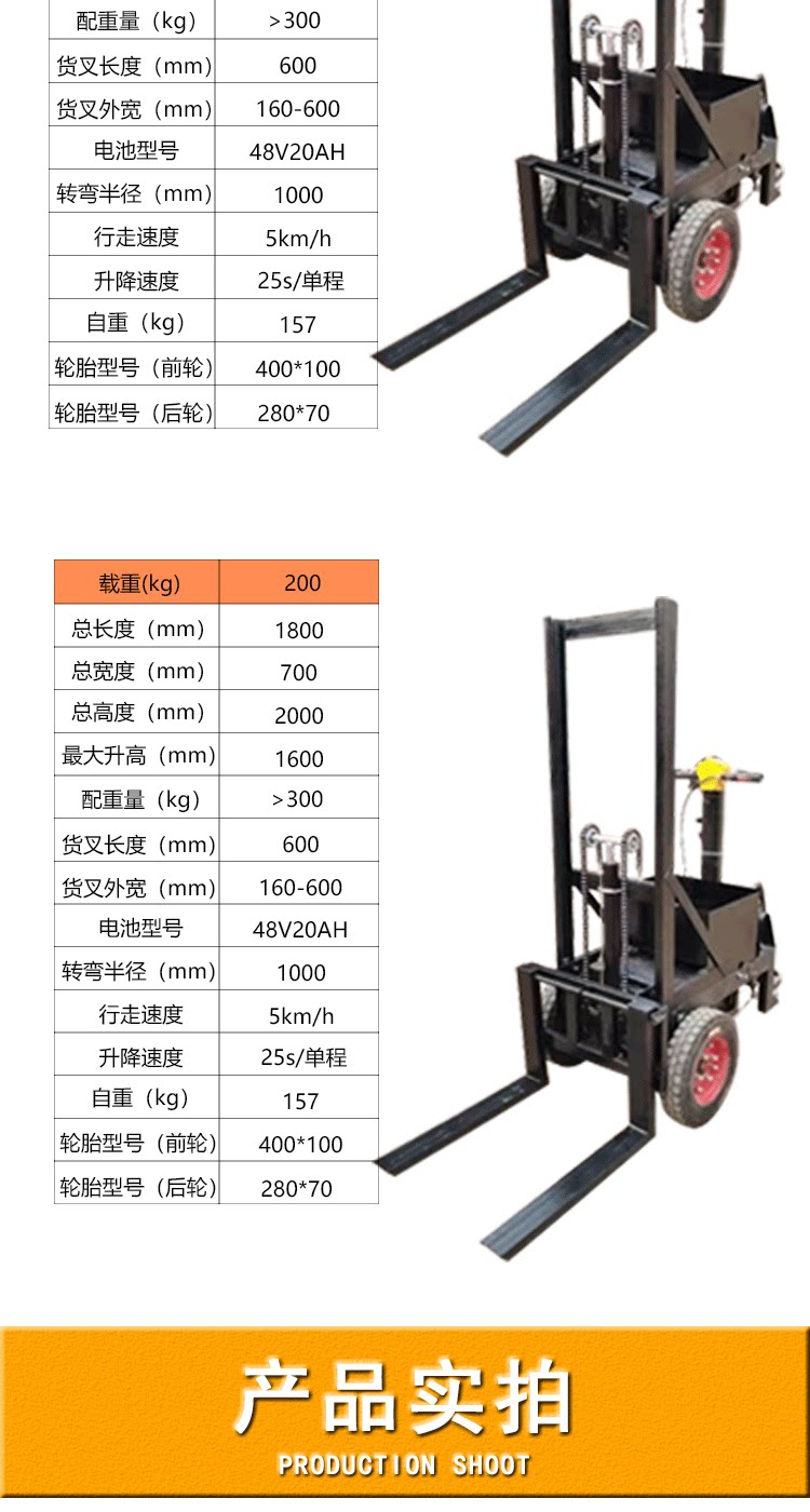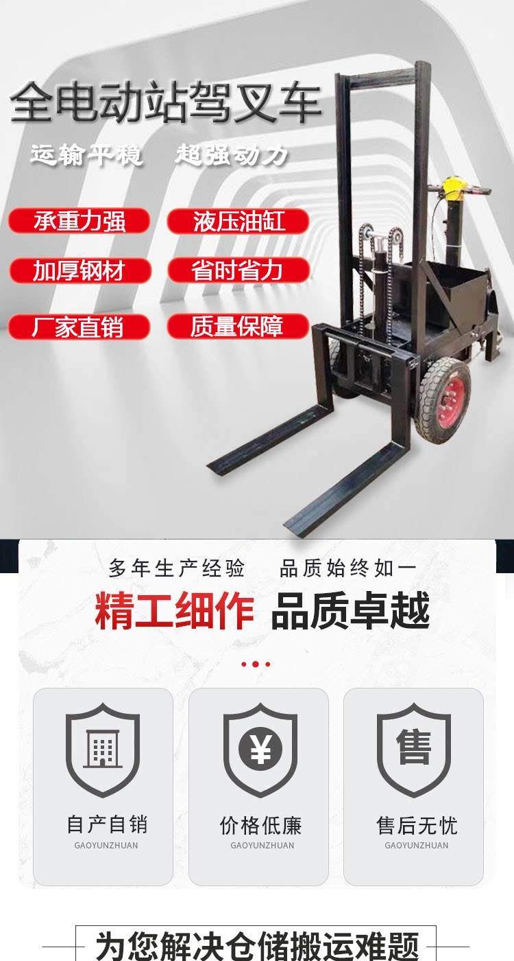 Стенд -Полная полная электрическая высота вилочного погрузчика Электрическая гидравлическая подъемная и движущаяся куча высокая -малая нагрузка и разгрузка.