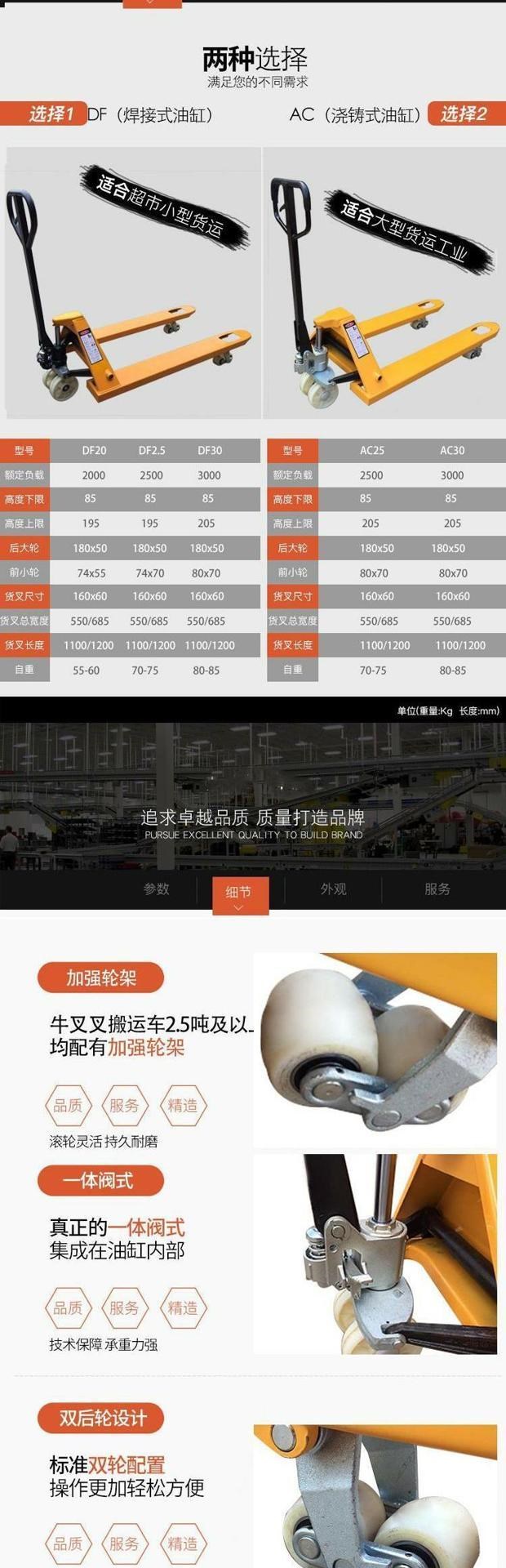 - Ручное 2,0 -тонное DF685 Сварка масляного цилиндра Нейлоновое колесо -F
