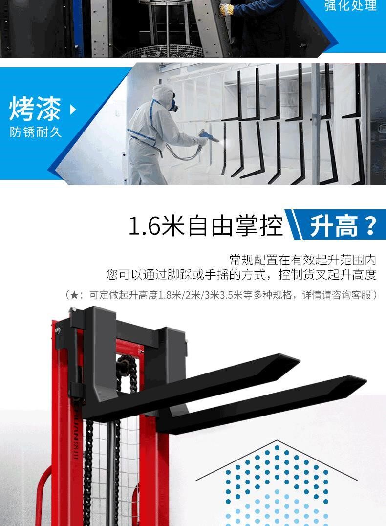 Увеличьте ручное гидравлическое транспортное средство Высокий лифт транспортного средства для вилочного погрузчика, 3 тонны из 2 тонн, все полу -электрические обработки, нагрузка и разгрузка локомотива