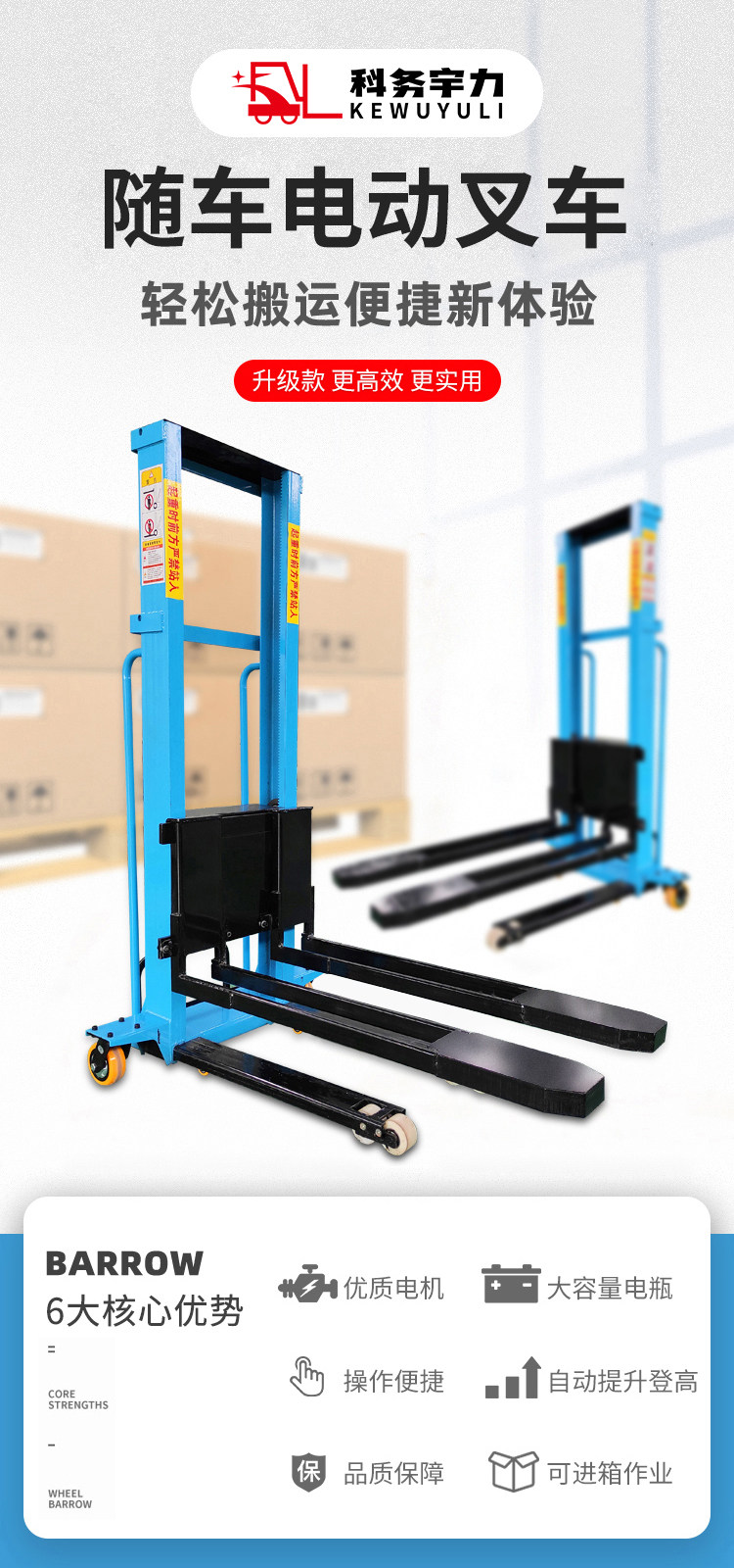 科务宇力 Портативный грузовик -вилочный погрузчик Небольшой электрический погрузчик Руководство погрузки гидравлической загрузки и разгрузки и обработки прицеп