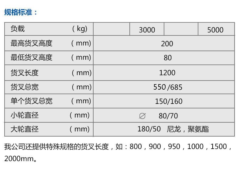 - 5-тонный встроенный насос, внешняя ширина 685, длина вил 1220, бесшумное железное колесо из полиуретана.