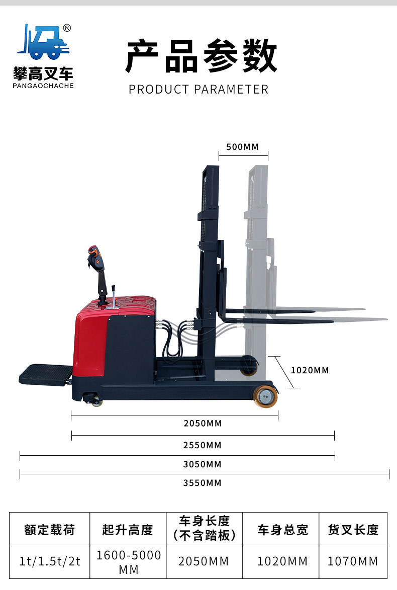 Восхождение на малую 1 тонну, 2 -я спереди -1,5 тонны ног -не -тяжелая полная электрическая куча высокая вилочная погрузчика высокая высокая