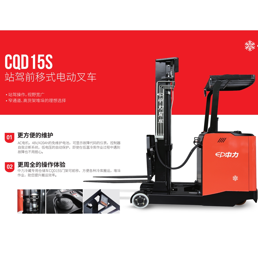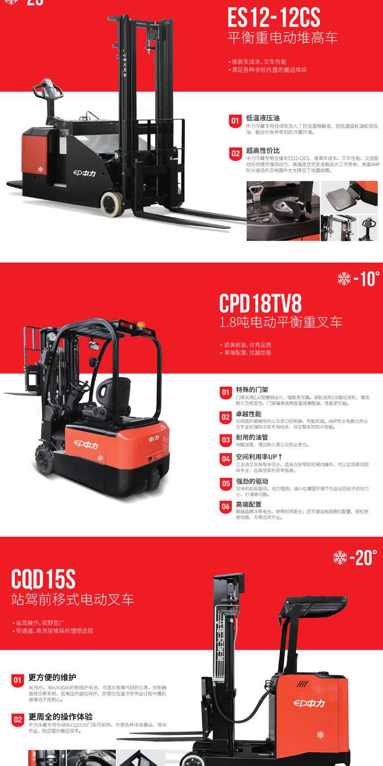 Cold Library Zhongli ES16 использует электрический вилочный погрузчик, чтобы сбалансировать тяжелую переднюю переднюю переднюю электрическую машину замороженную комнату для обработки свайного автомобиля