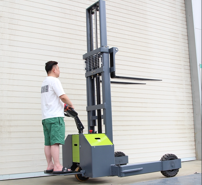 Полностью автоматический электрический вилочный погрузчик 1,5 тонны 2 остановок, малый автомобиль с высоким каркасом, небольшая батарея для транспортных средств Гидравлическая подъем и разгрузка