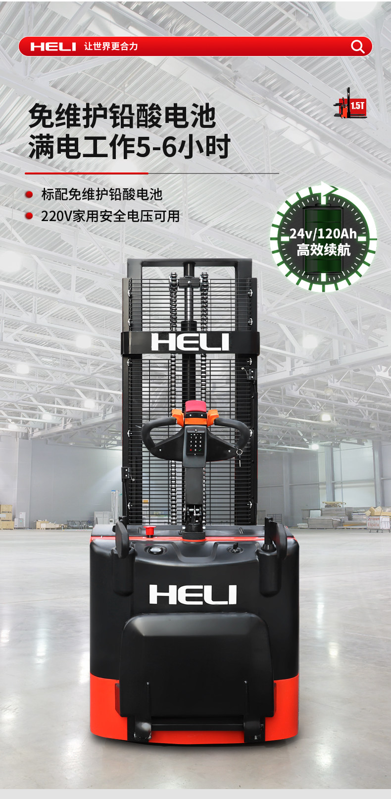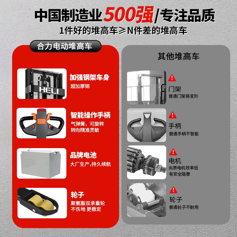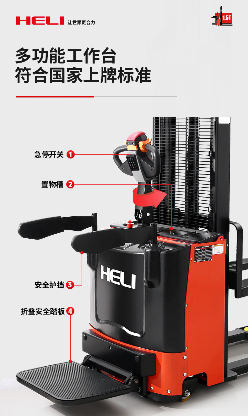 合力 Полный электрический вилочный погрузчик 1,5 тонны 2 -х пешеходов гидравлического стека с высоким подъемом транспортных средств.