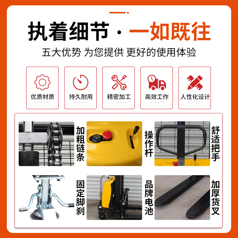 Дистанционное управление электрическим гидравлическим стеком Высокий транспортный автомобиль 2 -3 малого вилочного погрузчика