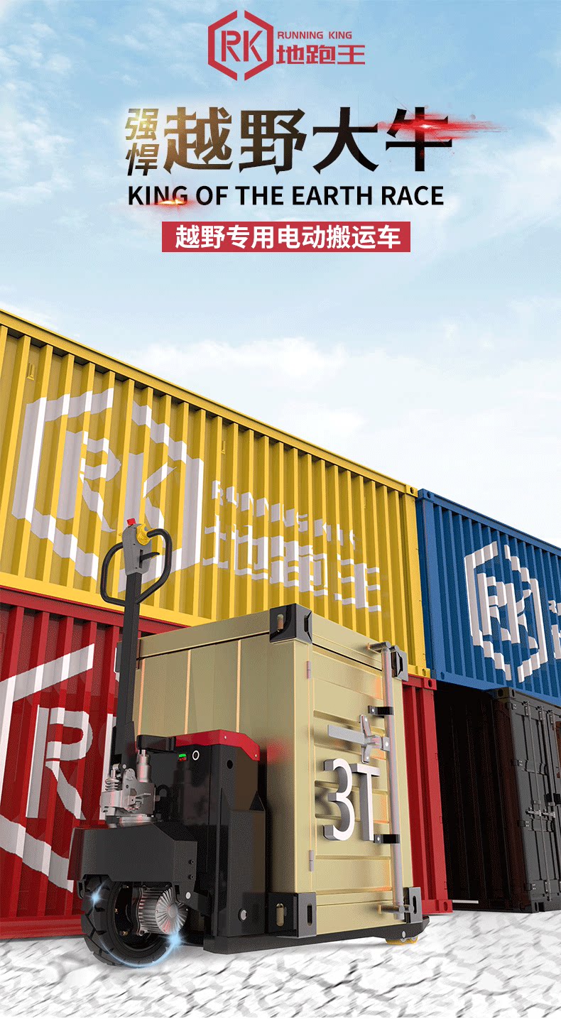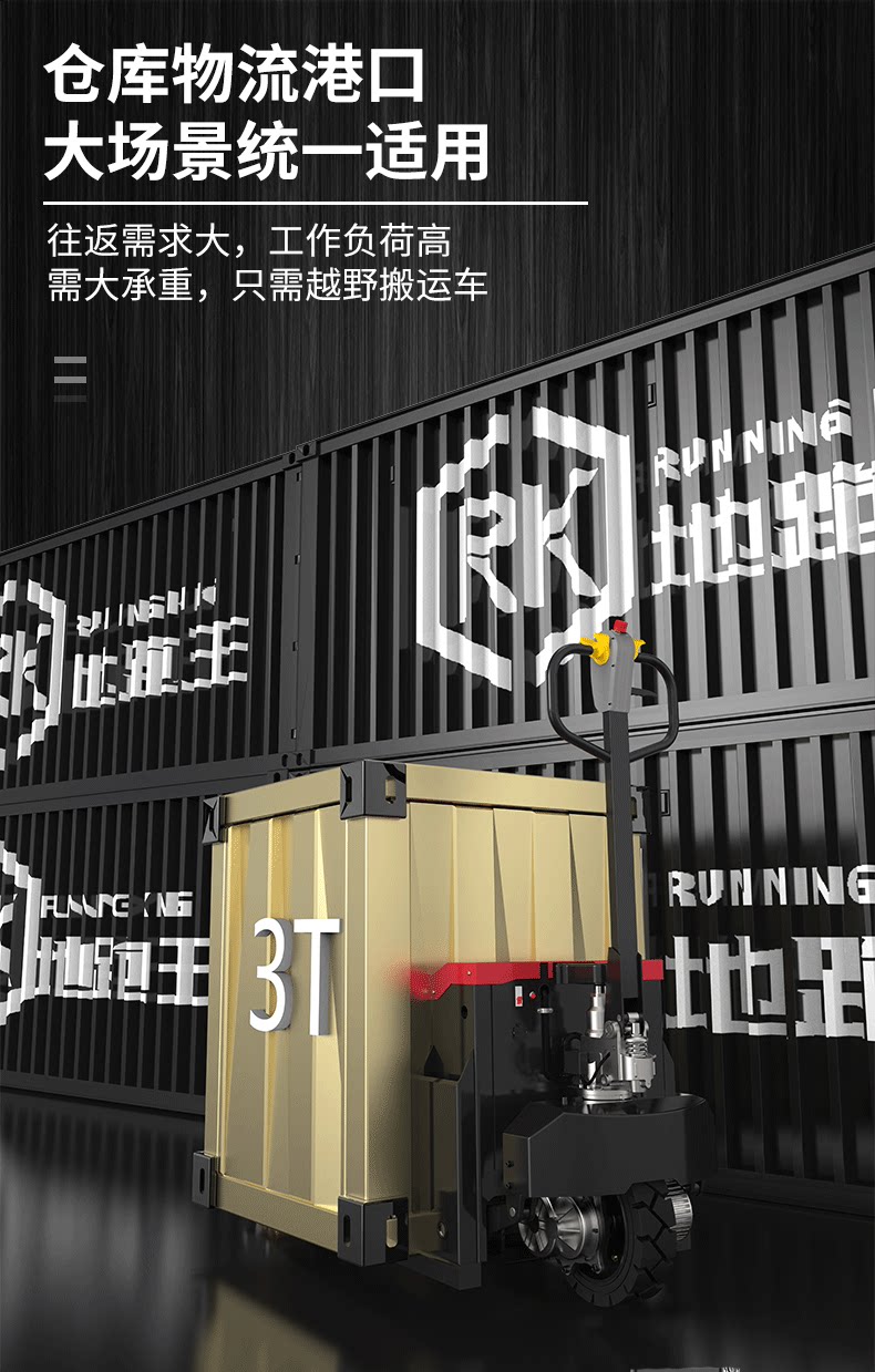 地跑王 Полностью электрическая 3-тонная тележка для поддонов, склад, завод, гидравлическая погрузка и разгрузка, вилочный погрузчик, строительная площадка, специальный внедорожный транспортный грузовик
