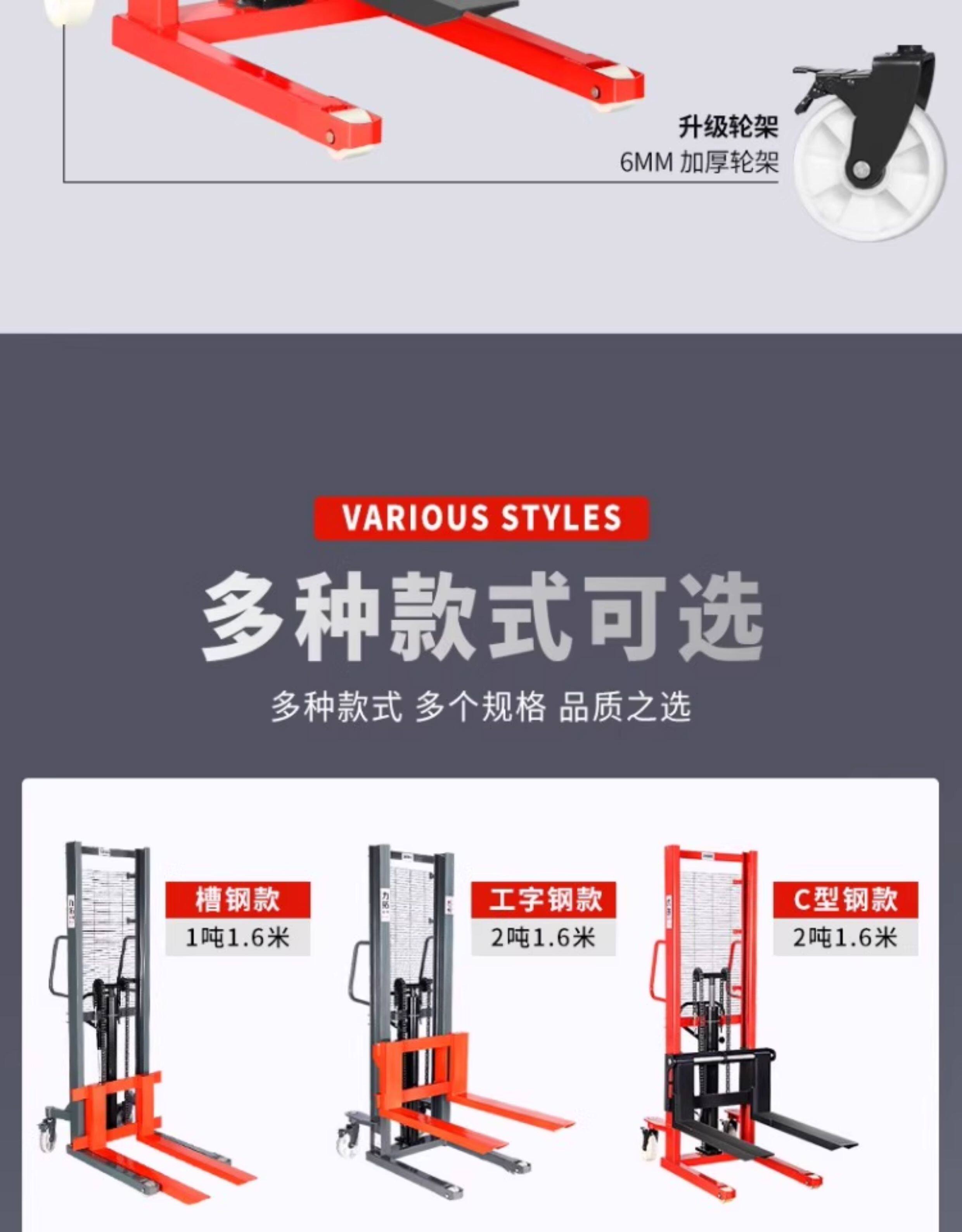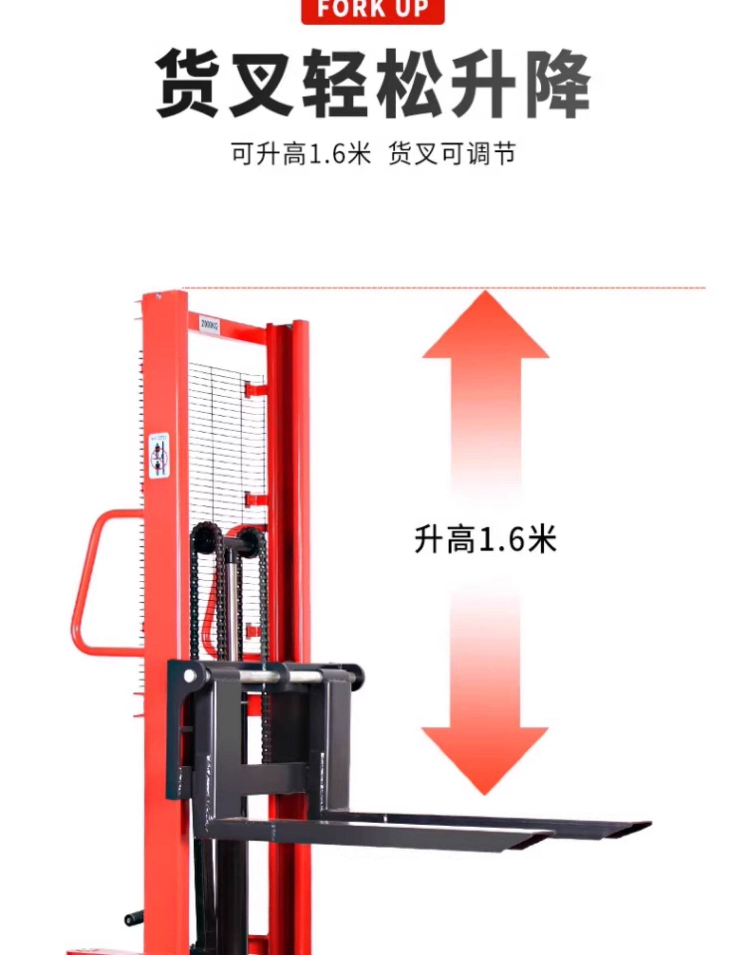 力拓中用 Гидравлический вилочный погрузчик-штабелер, 1 тонна, 2-тонный ручной гидравлический погрузчик, штабелер, земляная корова
