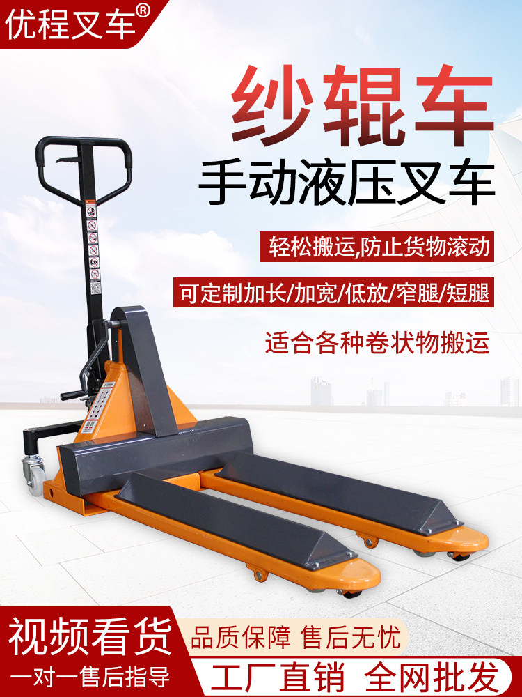 Индивидуальная ручная гидравлическая тележка для пряжи грузоподъемностью 2-3 тонны с круглым валом, погрузка бумажных трубок, трейлер для рулонов бумаги, удерживающий зажим, головка лотка, утолщенная земляная корова