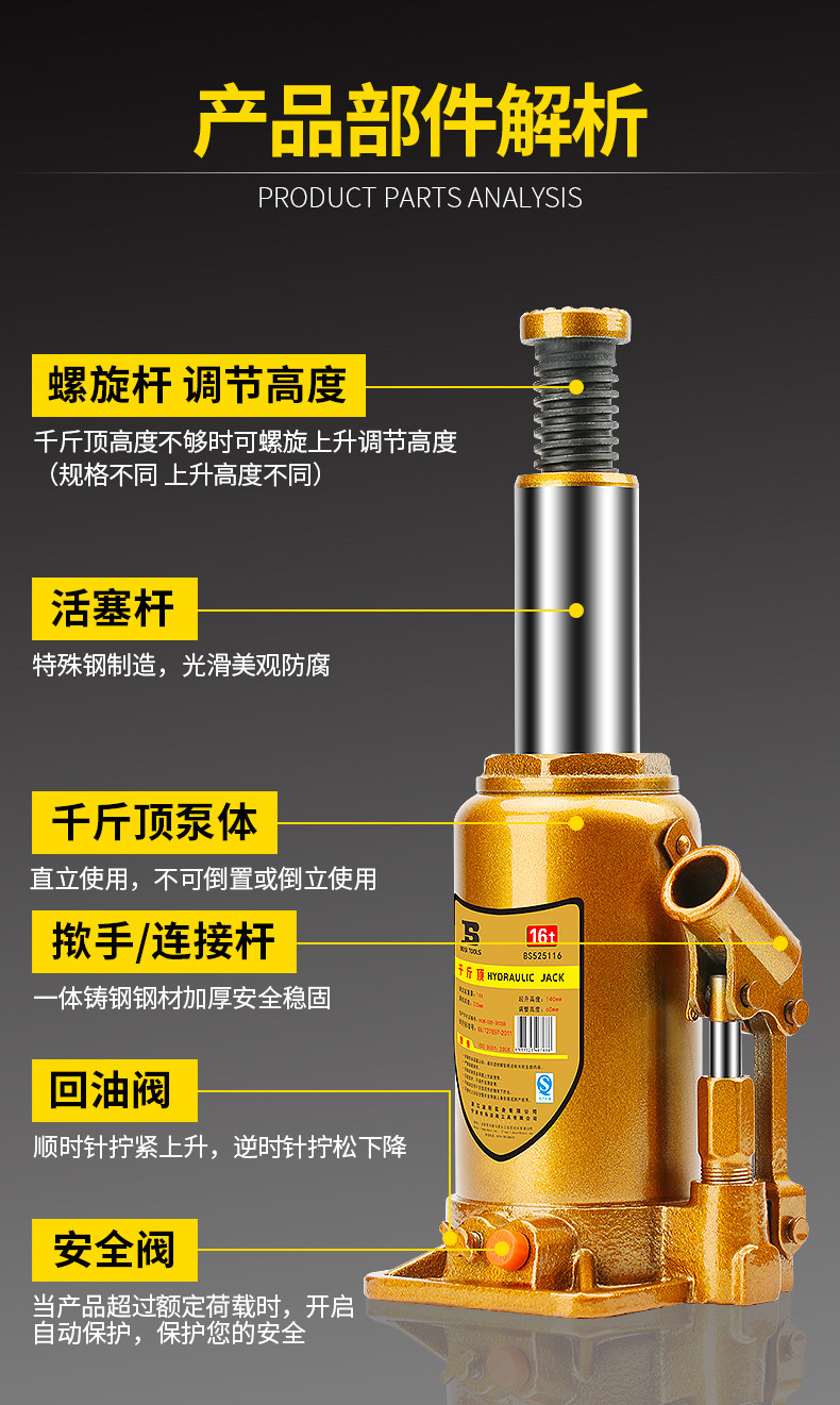 Джек машины Джека, 2 тонны 3 -тоне, 3 -я рука, встряхните золотой верхний инструмент с дороги, гидравлический дом.