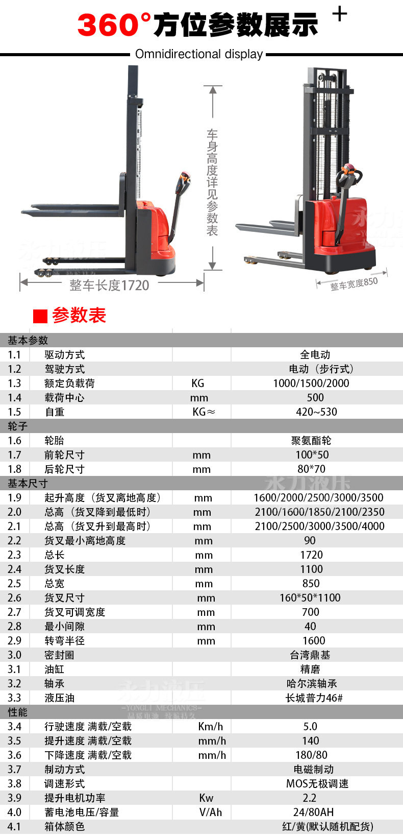 Полный электрический вилочный погрузчик 1 -тон пешеходной высококвалифицированный напряжение напряжения напряжения жидко
