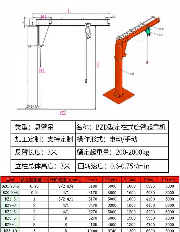 Колонна крана -тип кантилеверский подвеска электрод ротор 220V380V1 тонны 3 -тона заводской пользователь Использование кран