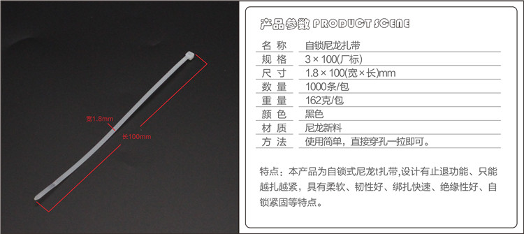 Нейлоновые черные пластиковые кабельные стяжки, 1.8mm, 100mm, 1000 шт, фиксаторы в комплекте