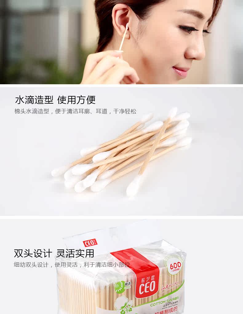Двусторонние одноразовые ватные палочки, ухочистка для ушей, портативное пылезащитное средство для снятия макияжа для домашнего использования