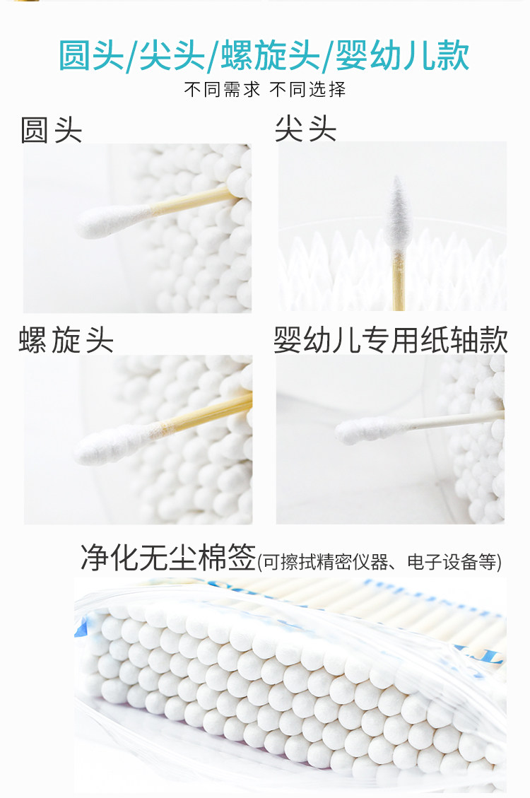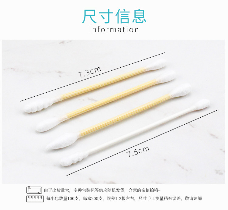 Двусторонние хлопковые детские гигиенические ватные палочки, ватные диски