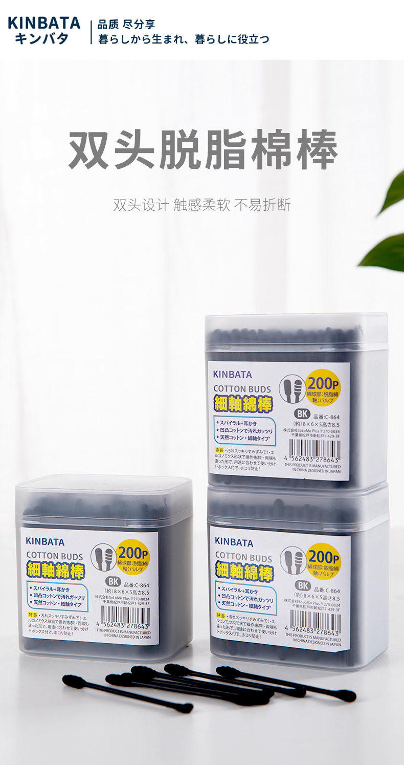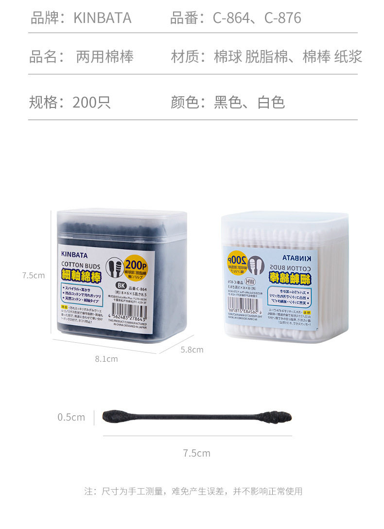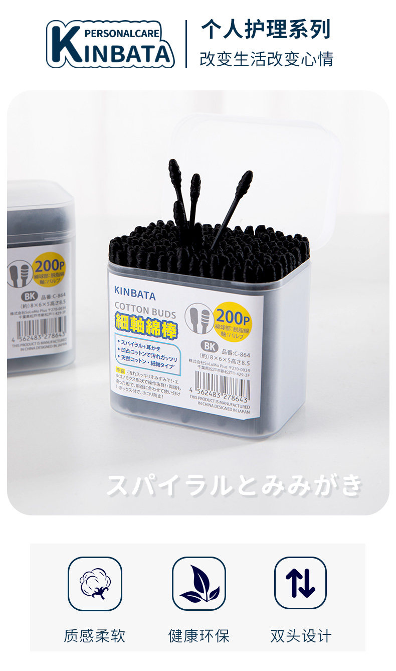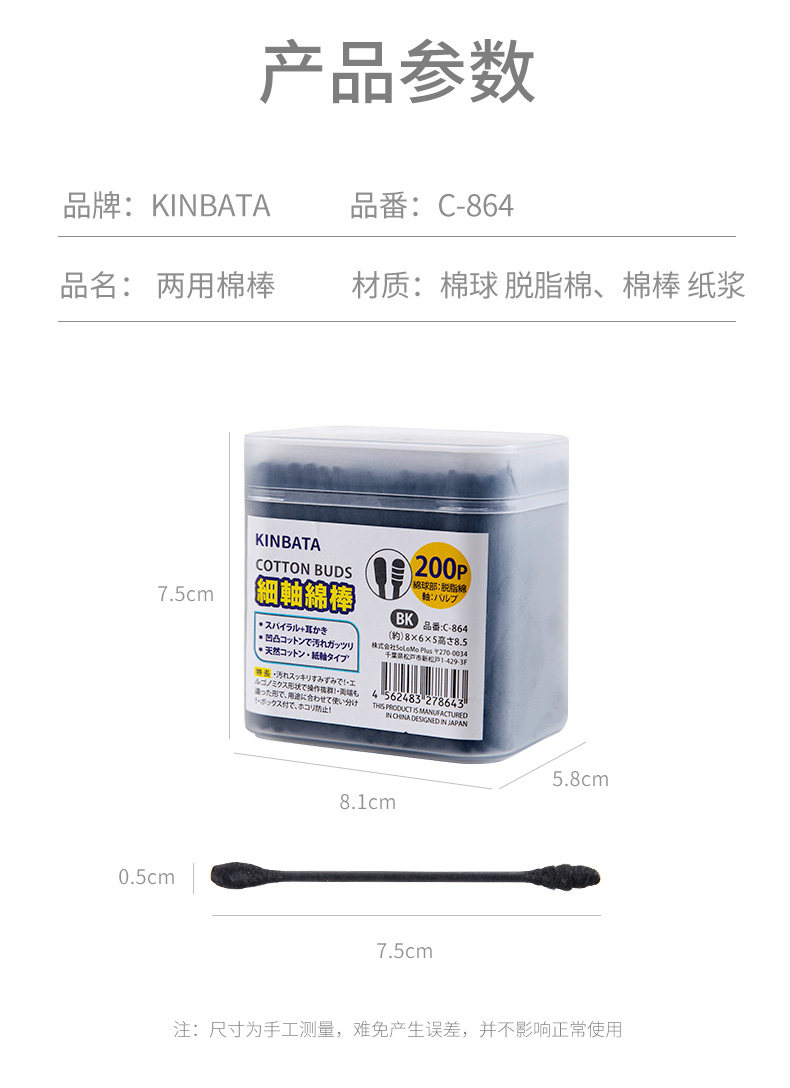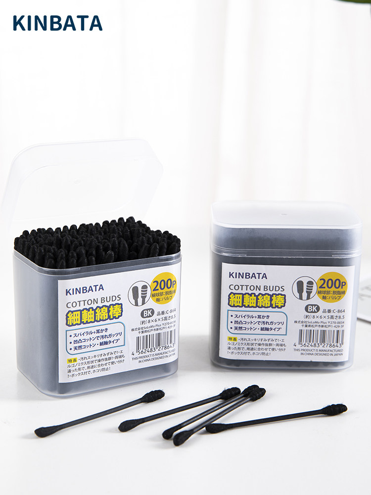 Японские черные двусторонние ватные палочки, хлопковое средство для снятия макияжа, база под макияж, хлопковые шарики, ухочистка