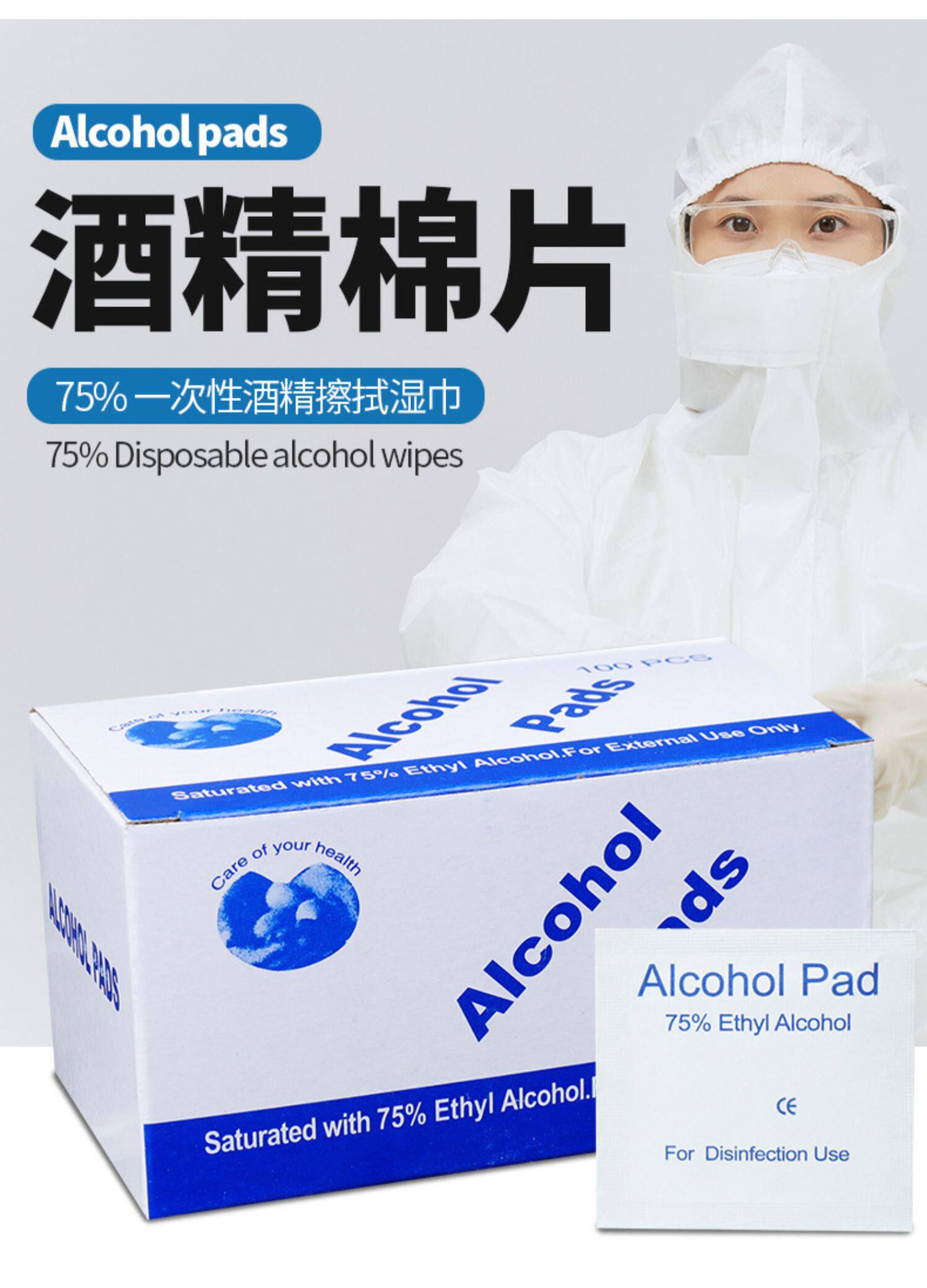 Салфетки, ватные диски, антибактериальный большой мобильный телефон для путешествий, 75 градусов, 100 штук