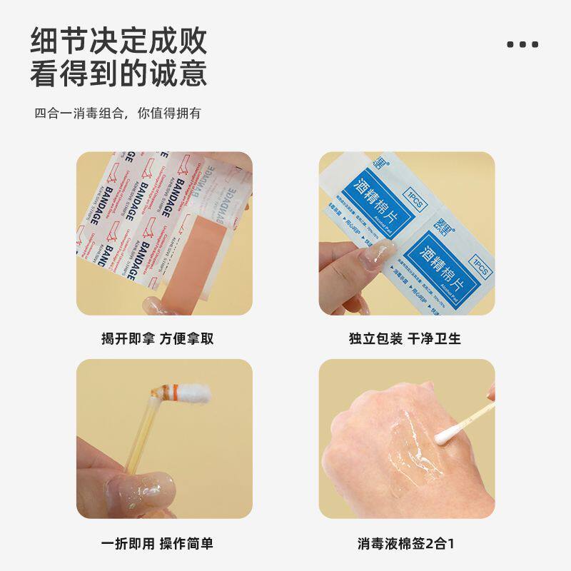 Комплект, ватные диски, дорожные ватные палочки, антибактериальные салфетки для путешествий, 4 предмета
