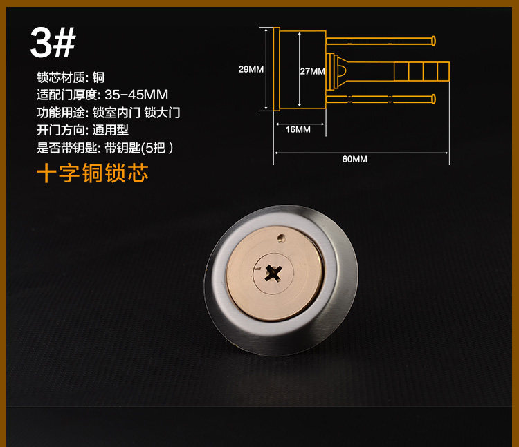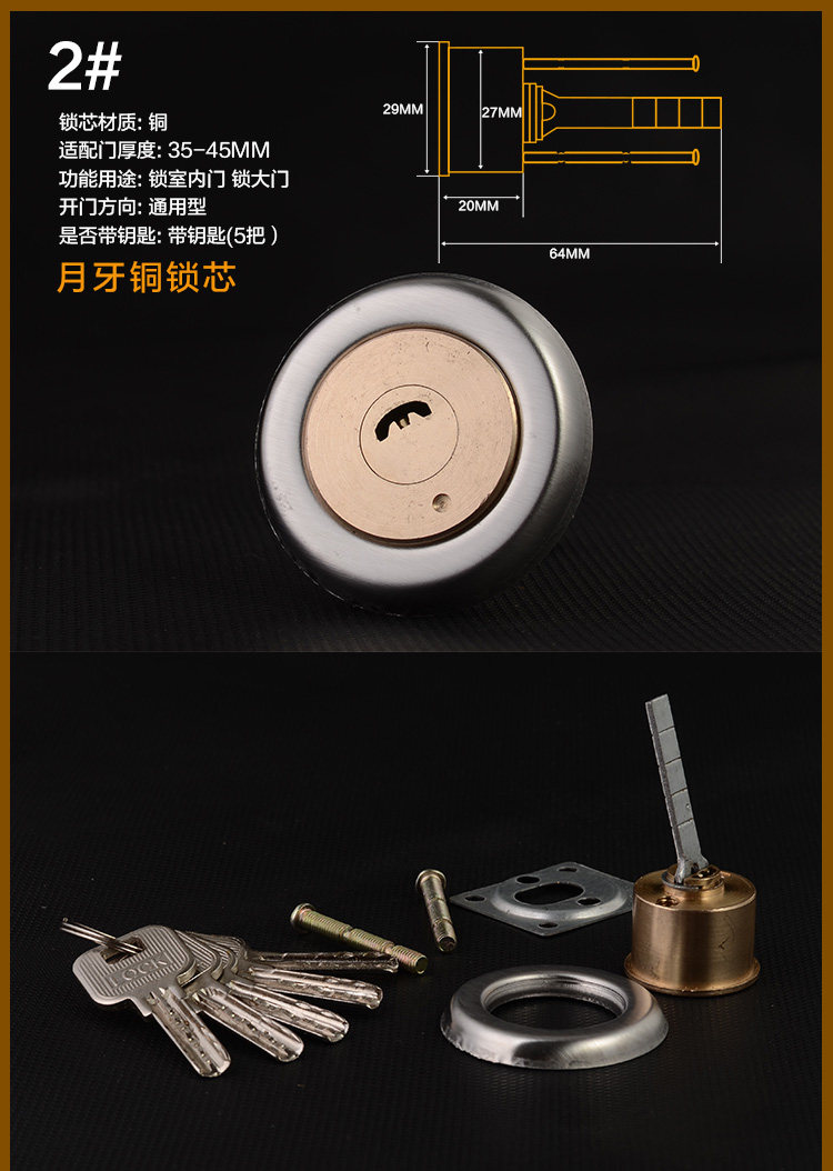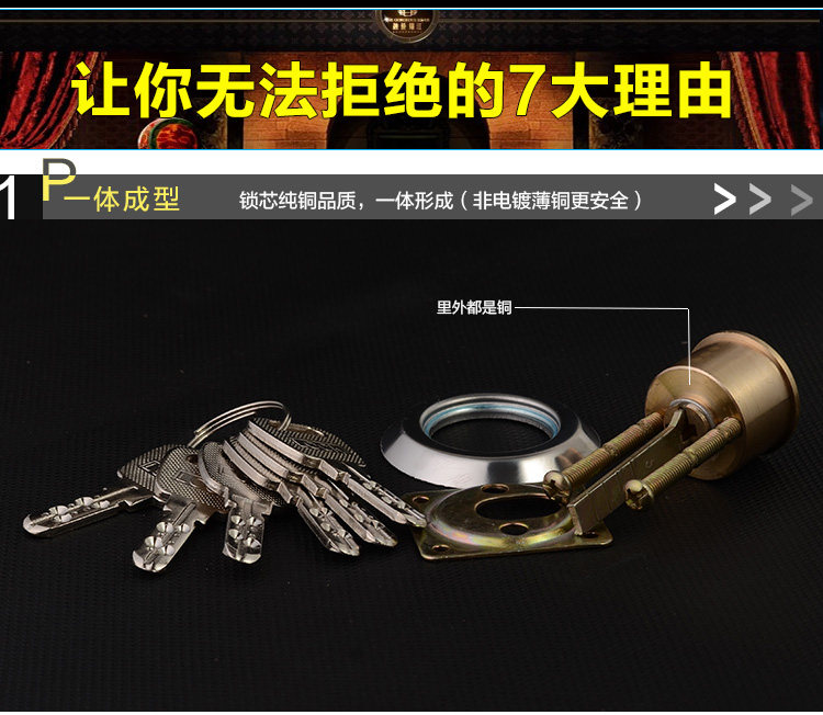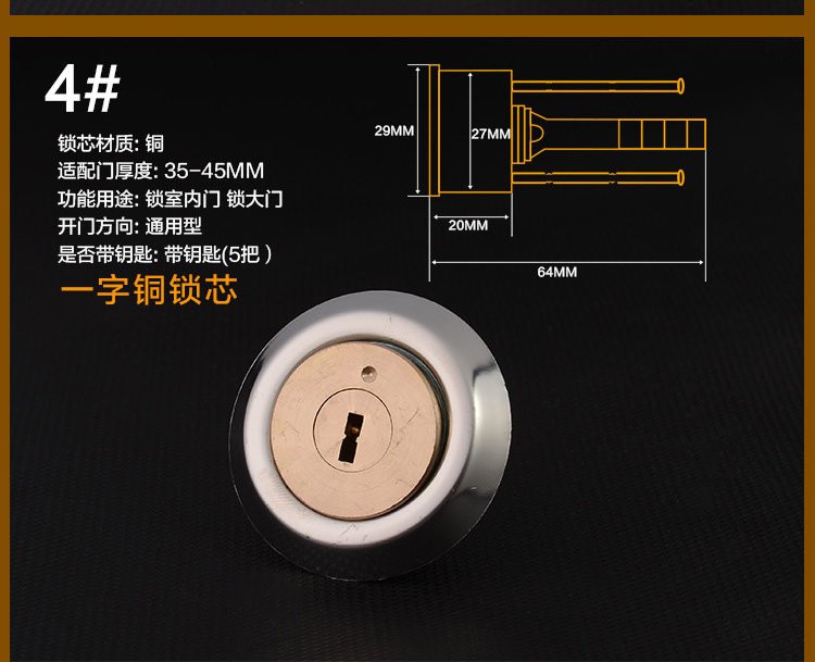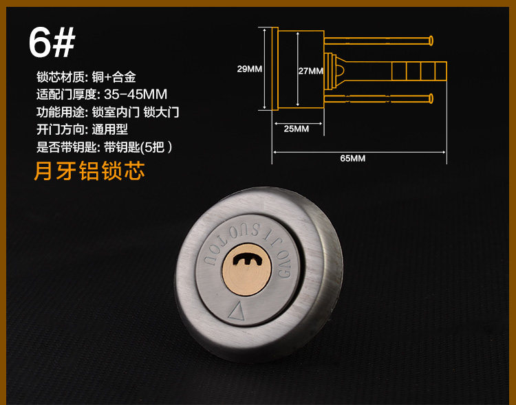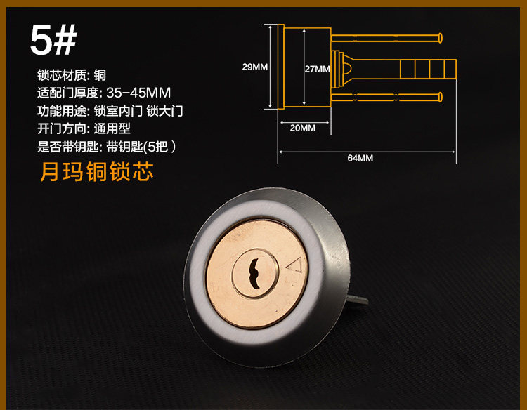 - Цилиндр ключ медной замок ядра (пять ключей)