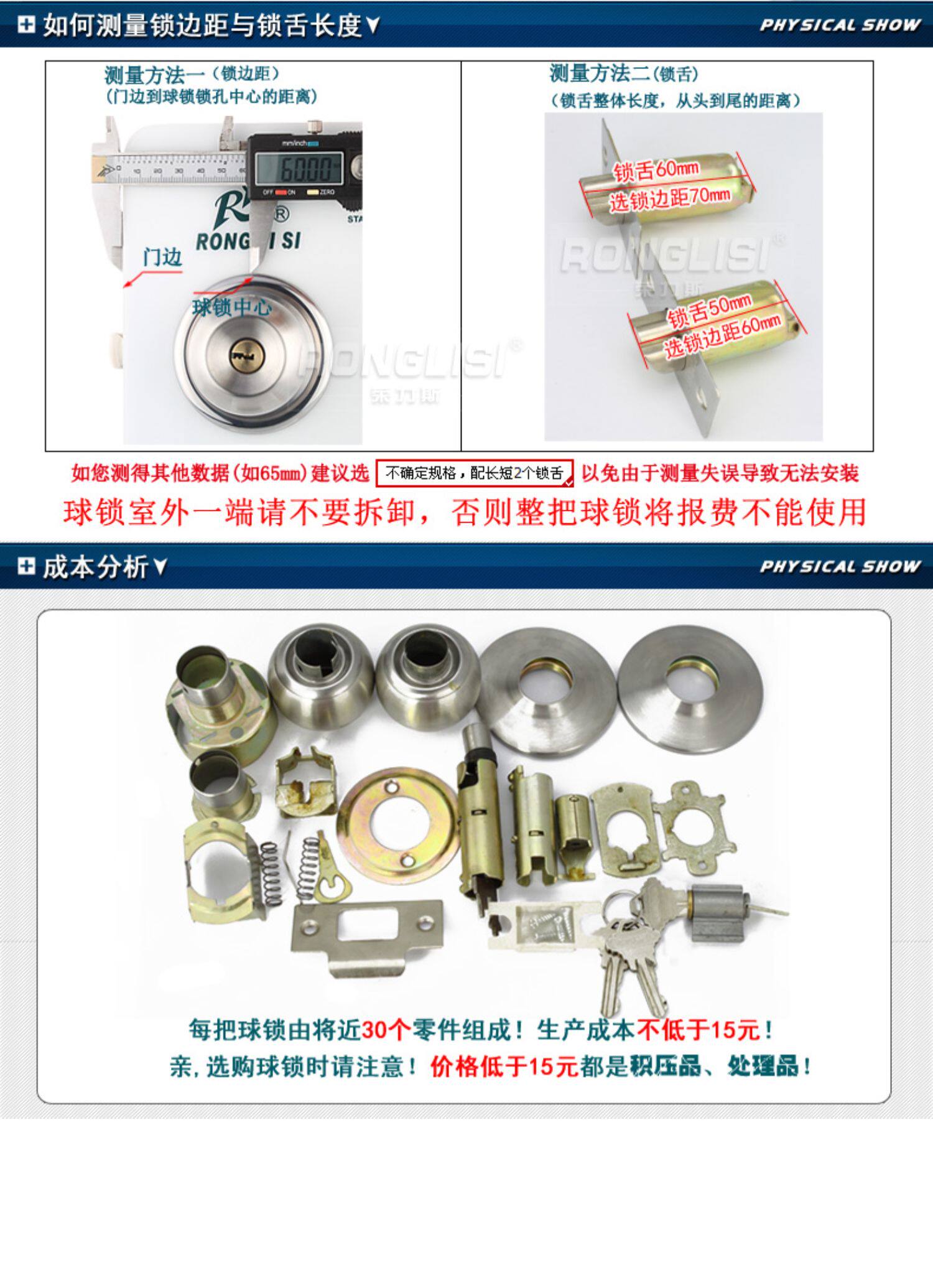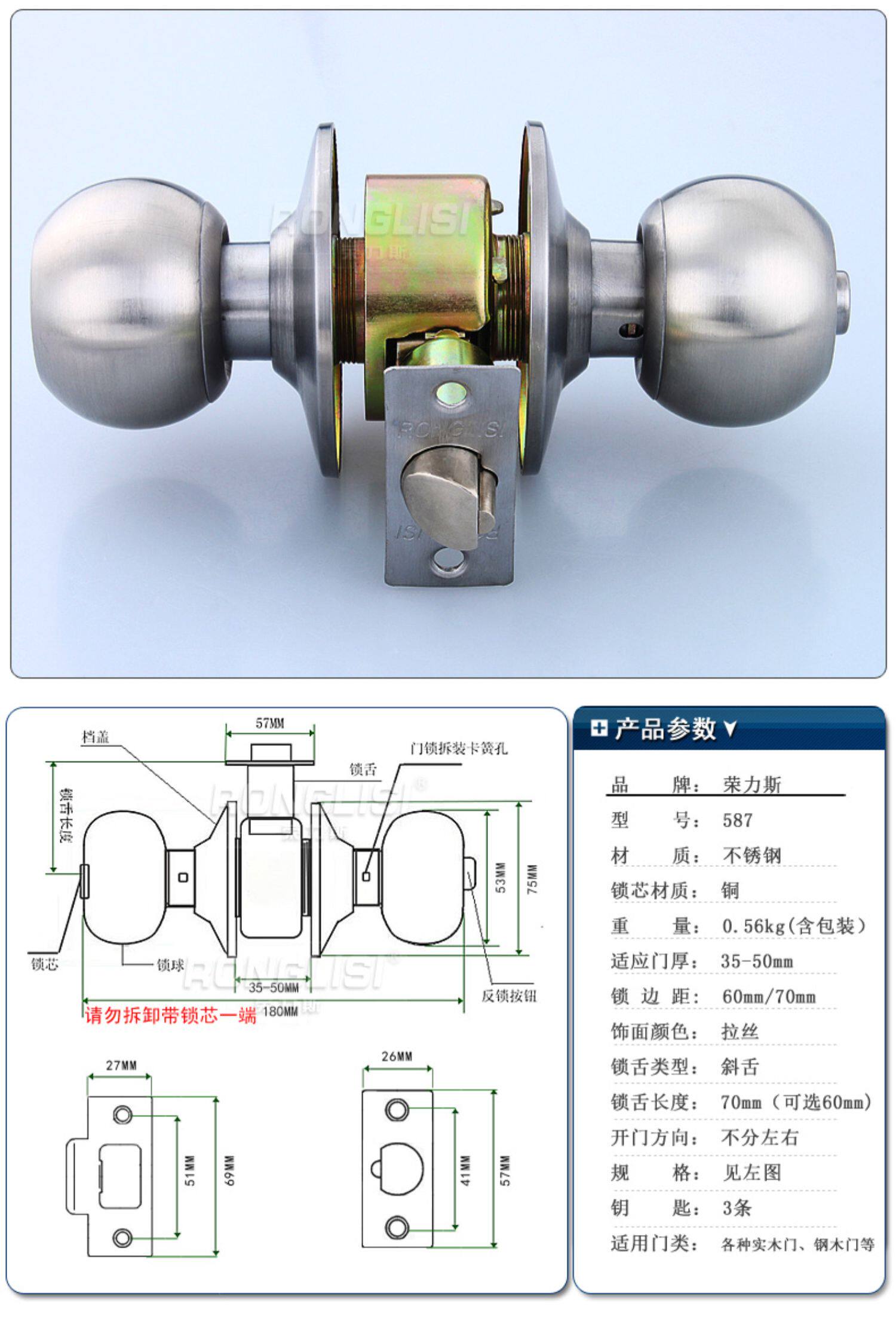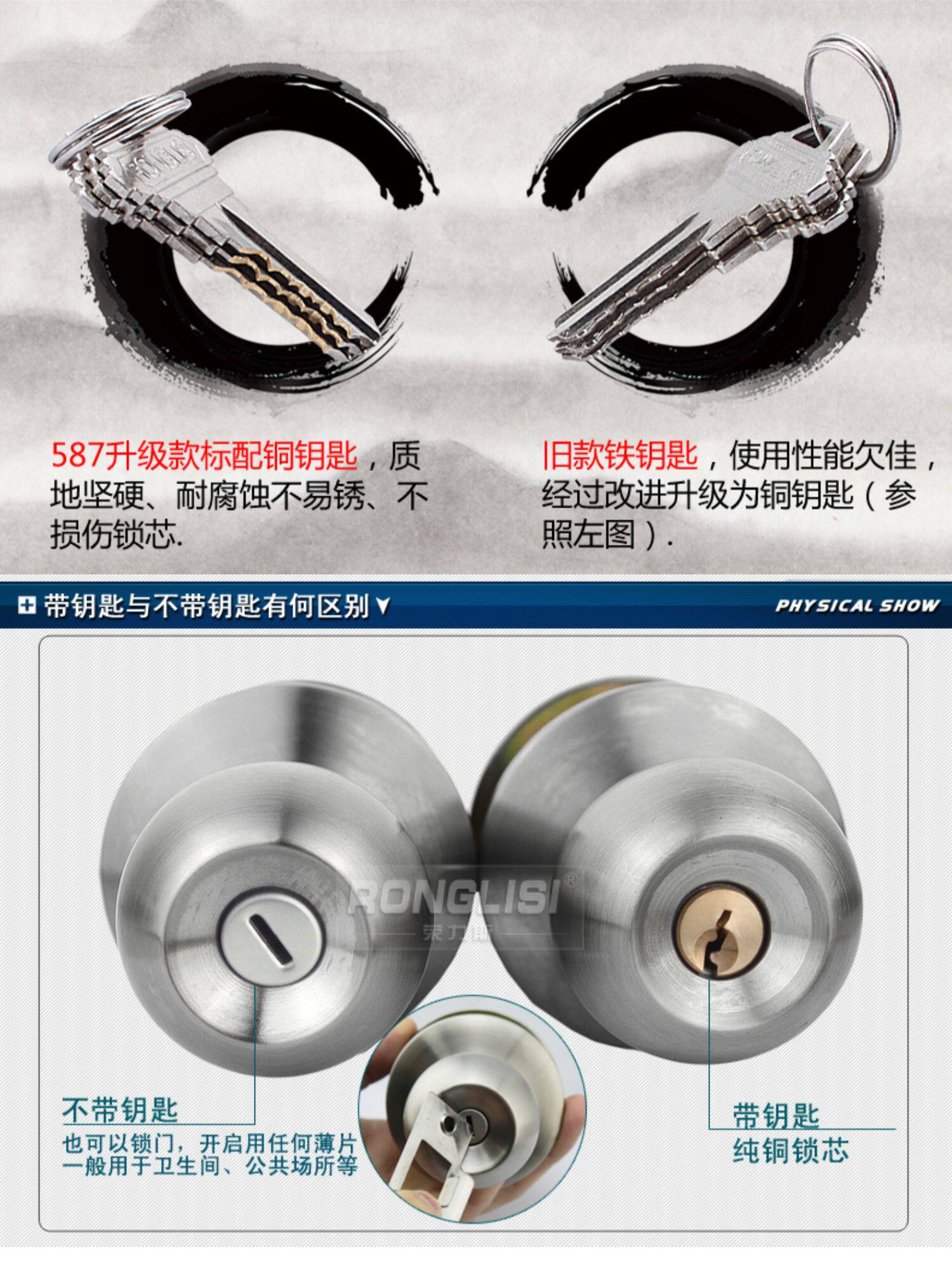 荣力斯 Сферический старомодный универсальный замок из нержавеющей стали