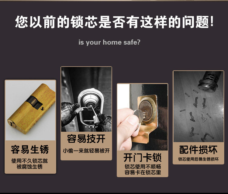 Медный двусторонний старомодный универсальный замок для домашнего использования, анти-кража