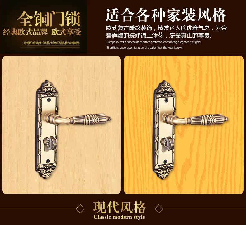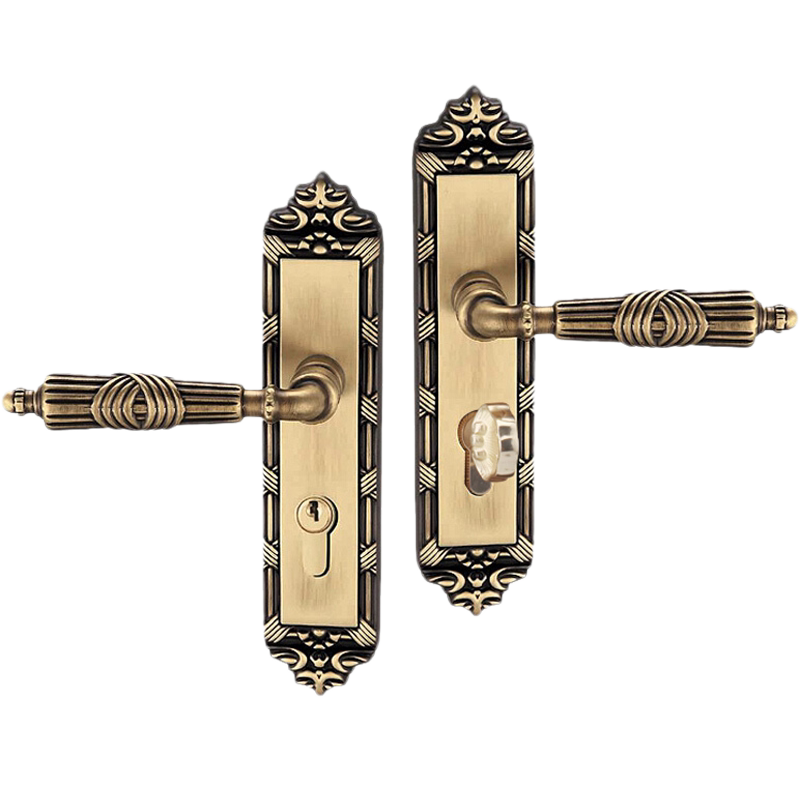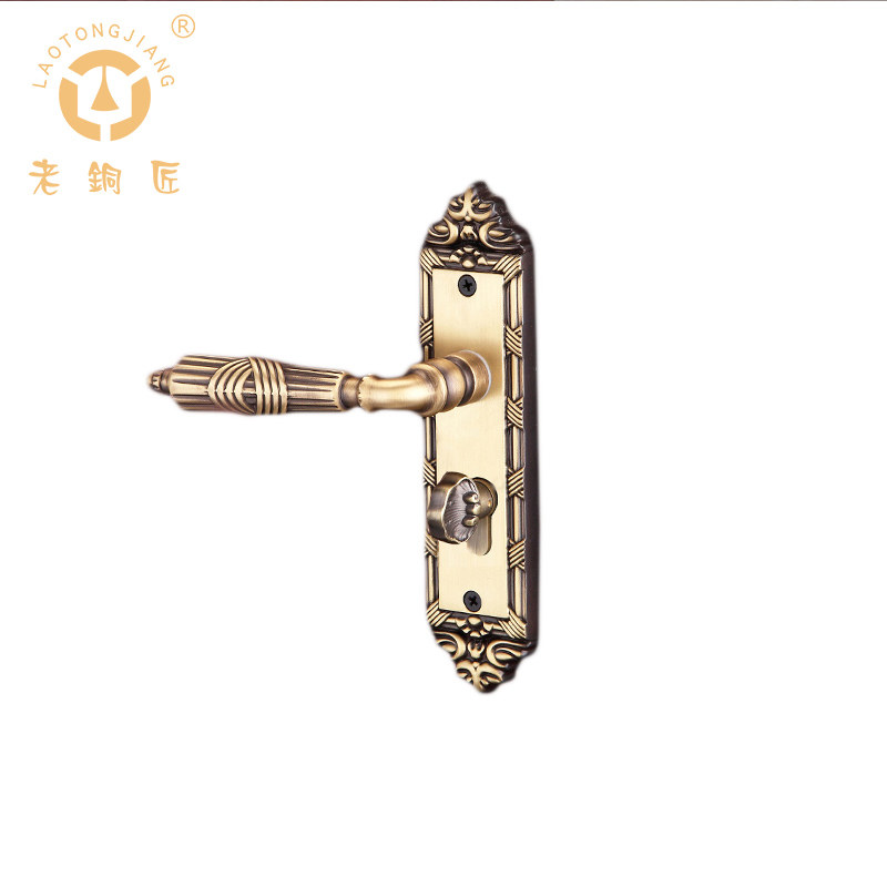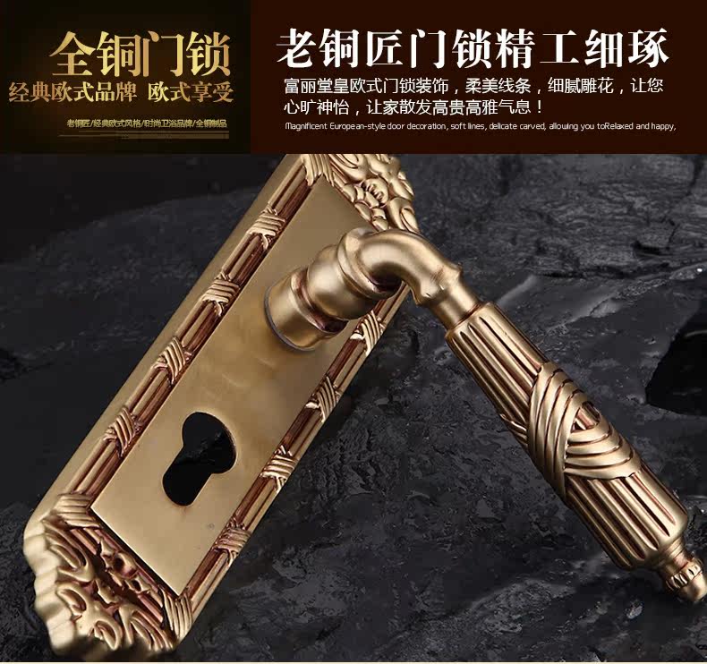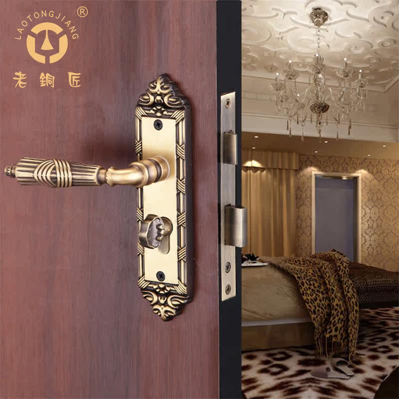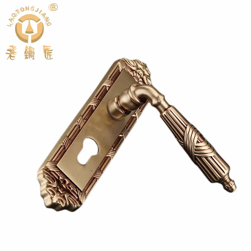 老铜匠 Вся медная европейская крытая дверная локона вилла с твердым дверным дверью, тихая ручка дверной двери DZ806-316