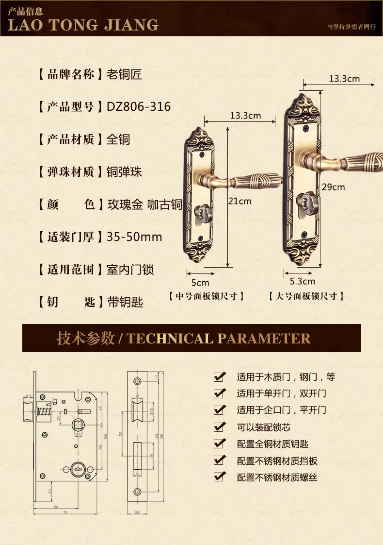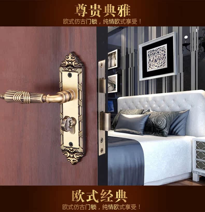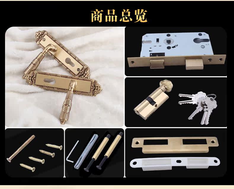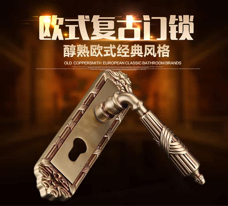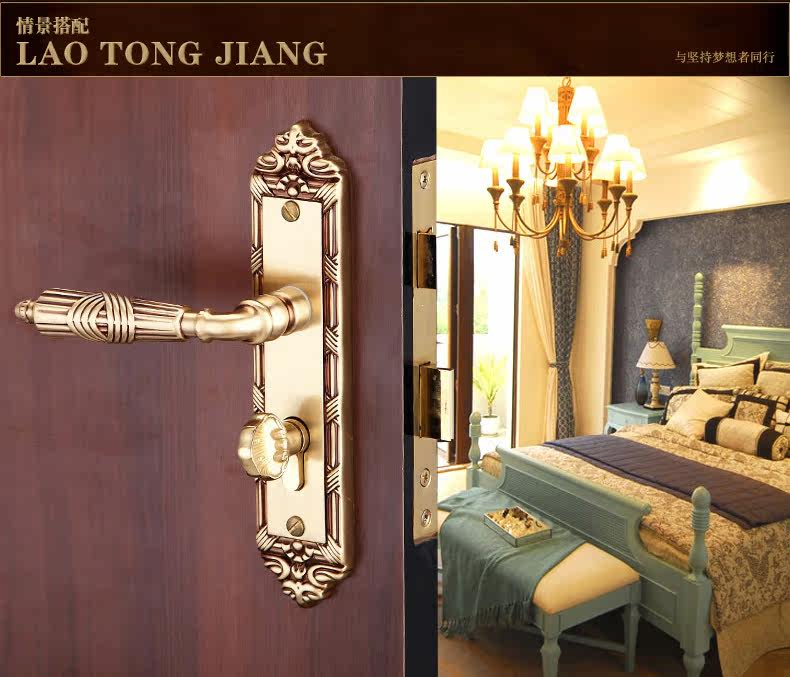 老铜匠 Вся медная европейская крытая дверная локона вилла с твердым дверным дверью, тихая ручка дверной двери DZ806-316