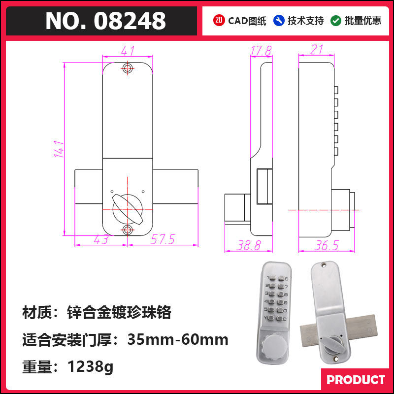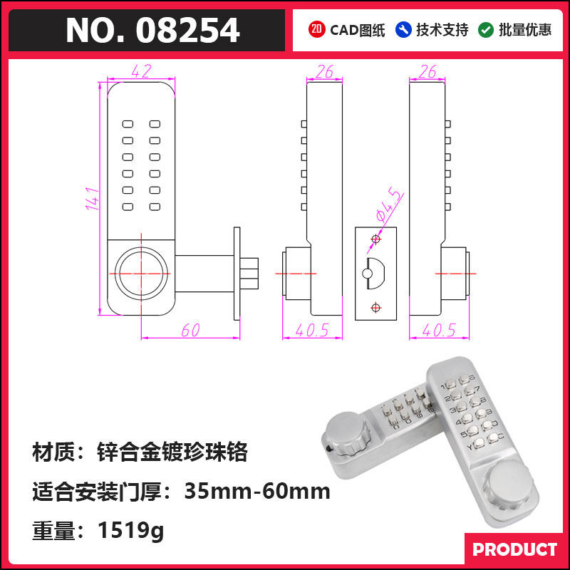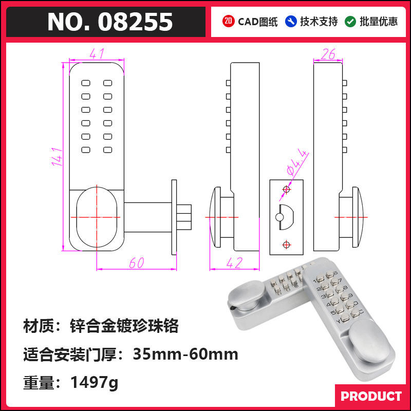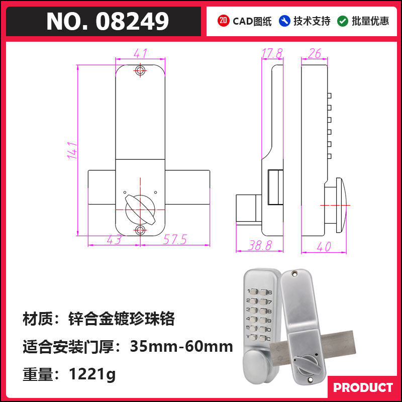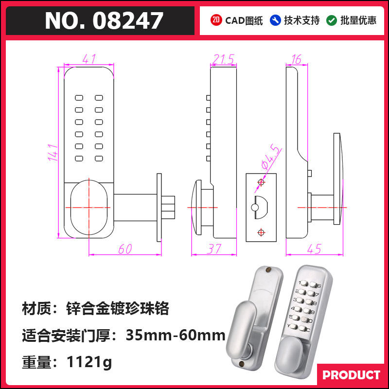 Вторая генерация Механическая блокировка пароля открыто дверная блокировка дверей KFC Ключ для блокировки пароля.