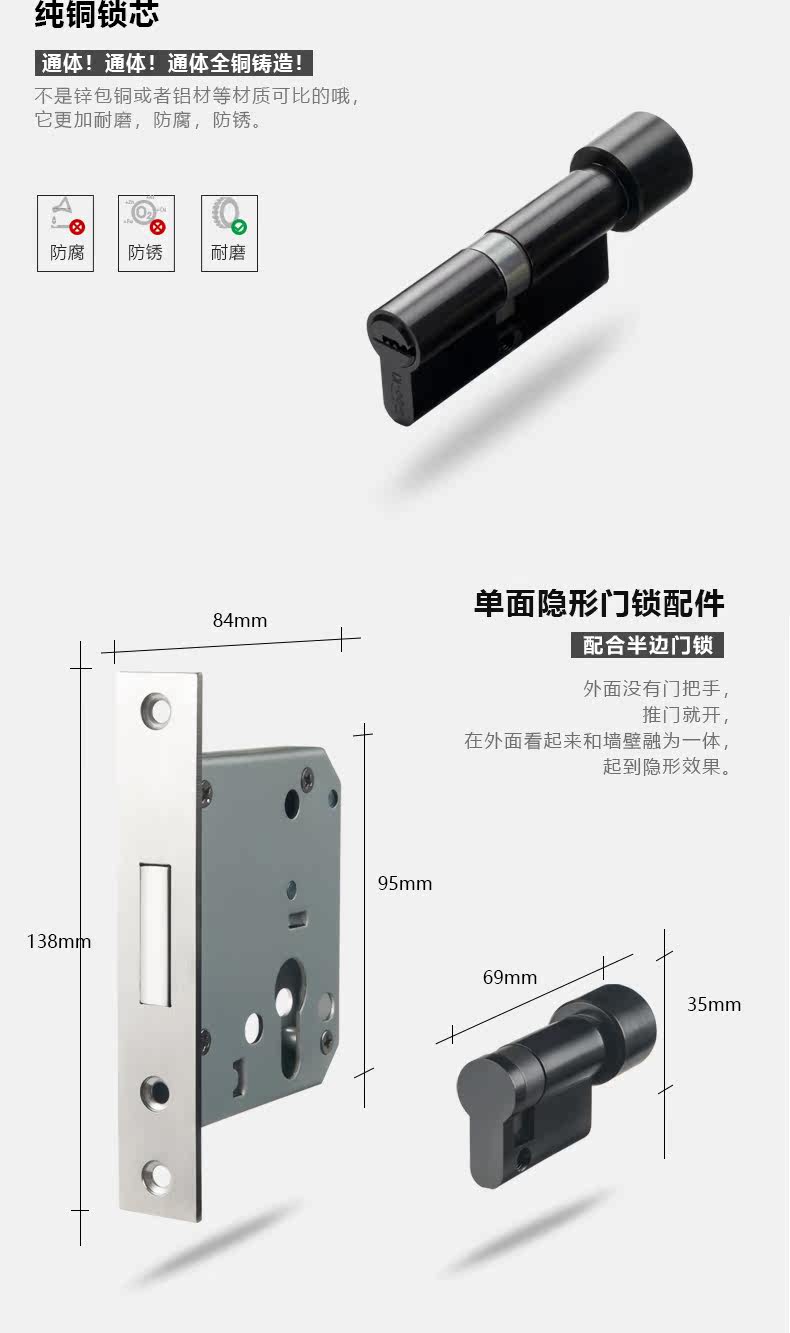 Gioqi Simple Door Lock Room Door Door Lock Черно -белый нордический современные локоны ванной комнаты