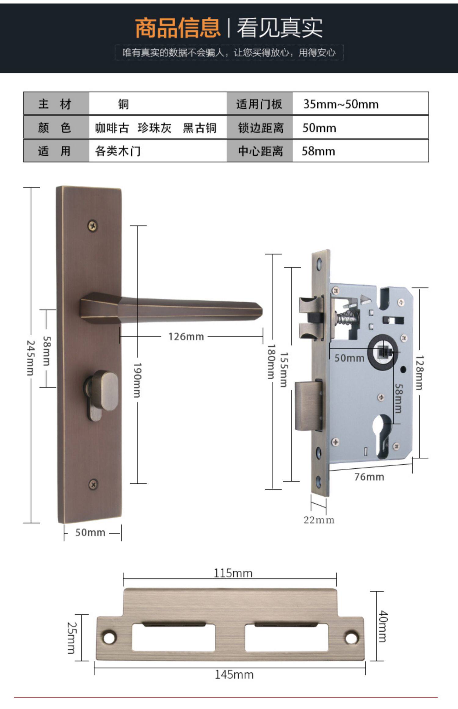 - Поддельные замки+3 петли+1 дверная всасывание