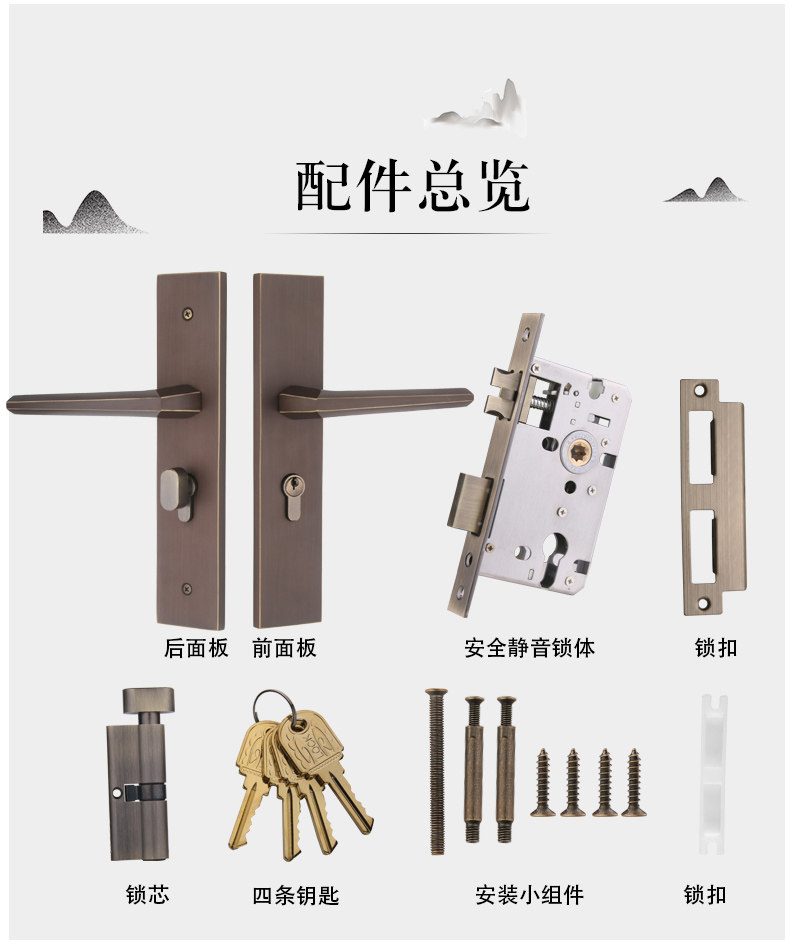 Вся -Коппер легкий роскошный скандинавский минималистский ветер тихий магнитный всасывающий запасная комната сплошной дверной дверь Дверь Дверь Дверь Универсальный дом универсальный