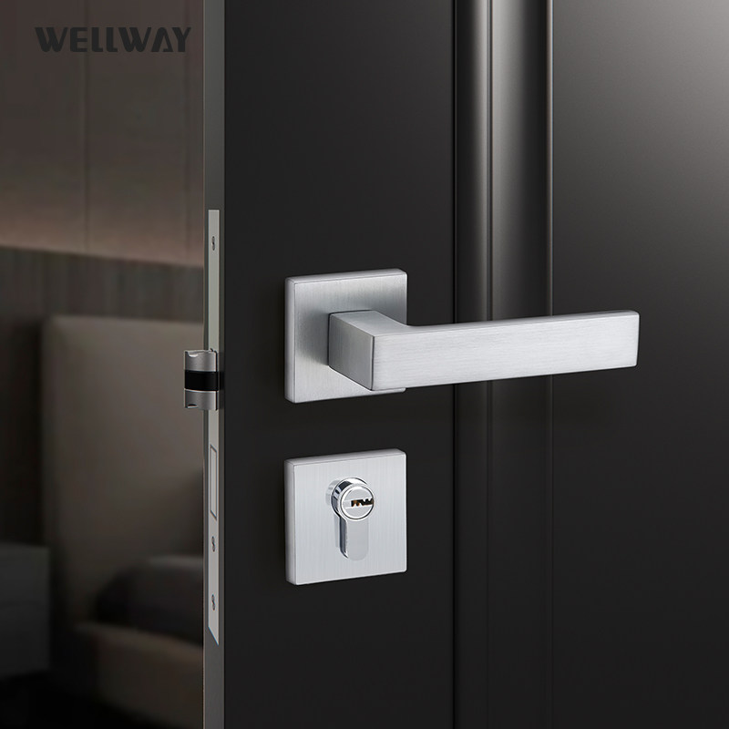 Ручка с дверью Wellway в современной минималистской магнитной деревянной дверной замке тихо и дома универсальная спальня площадь