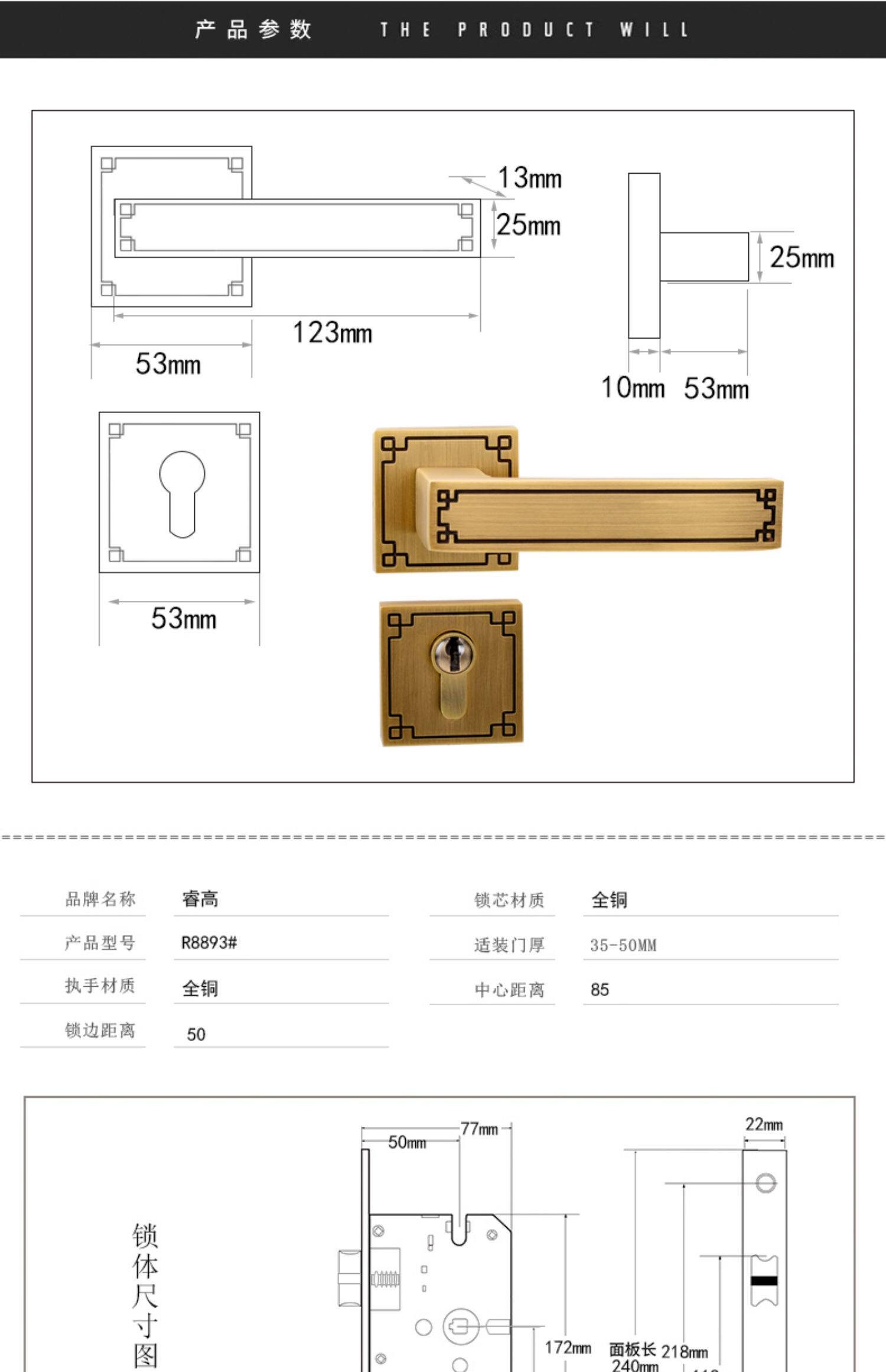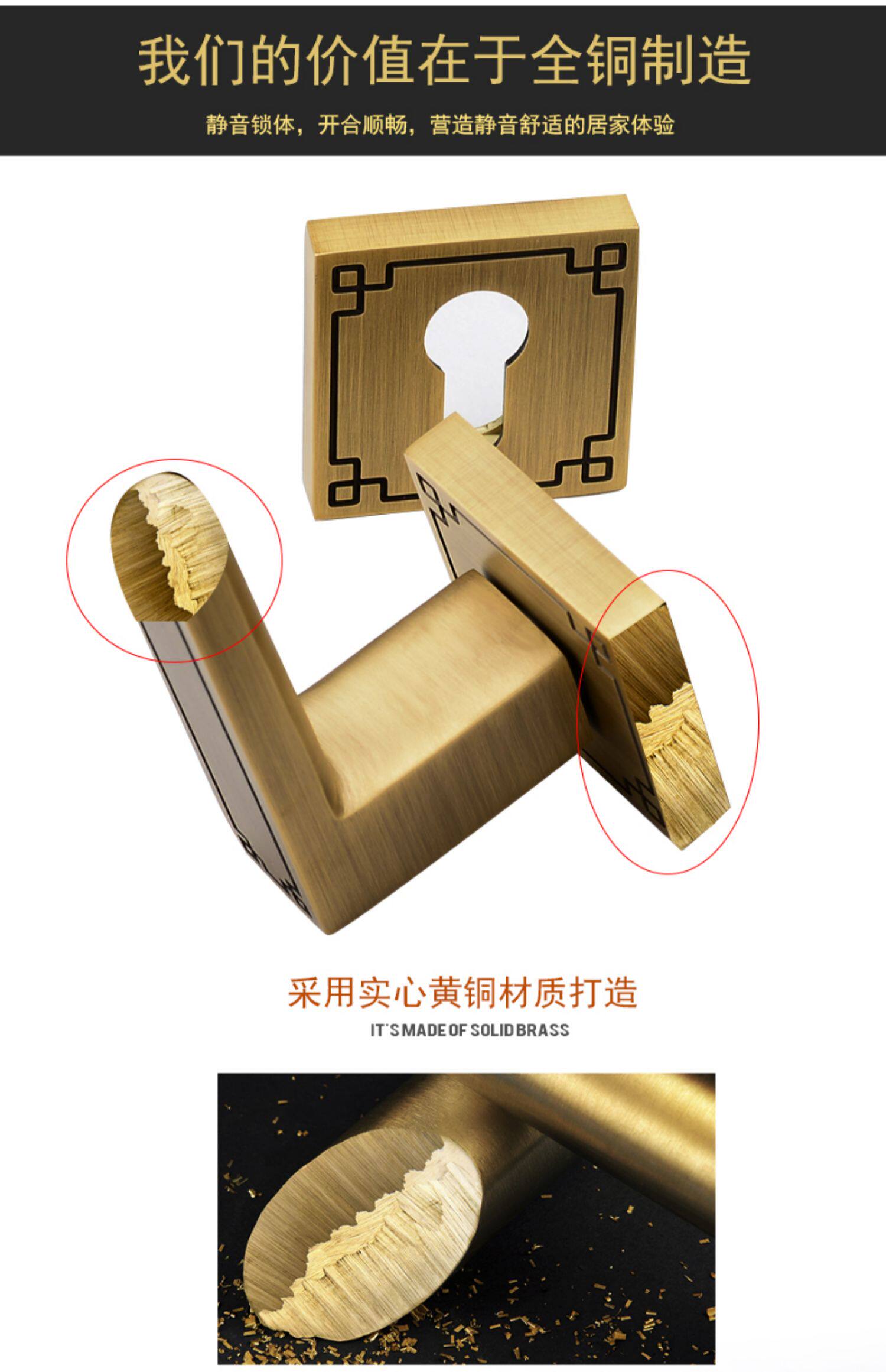 Медный универсальный раздельный замок для домашнего использования из натурального дерева с ключом