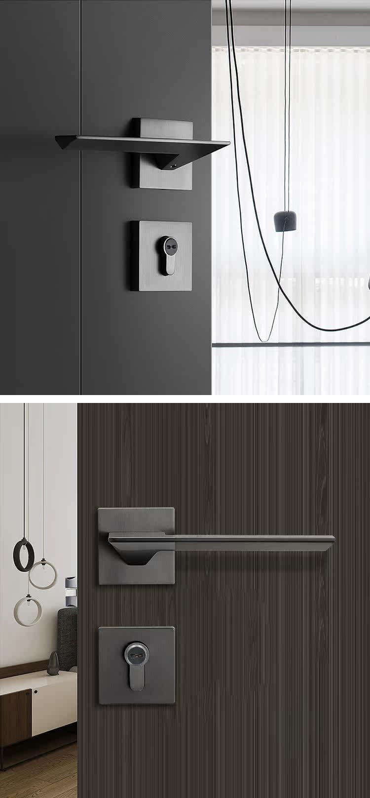 固菱 Современный черный минималистичный замок из натурального дерева, скандинавский стиль
