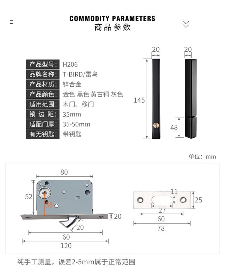 雷鸟 Новая минималистская скользящая дверная замка специальная ручка раздвижная дверная замка для ванной комнаты для ванной комнаты для ванной комнаты