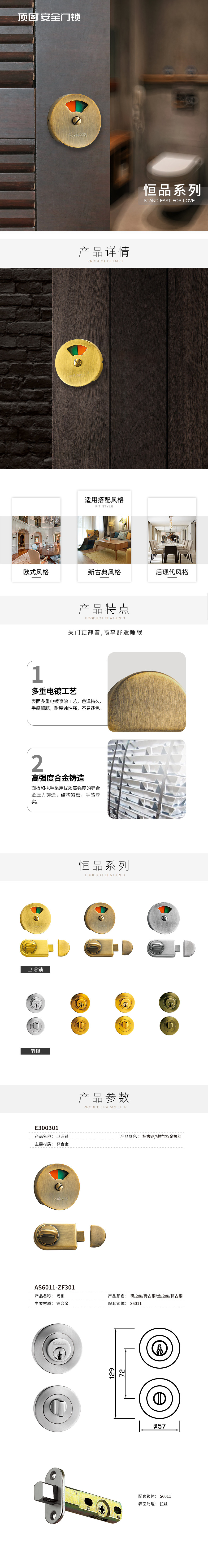 顶固 Универсальный бронзовый замок из натурального дерева с ключом