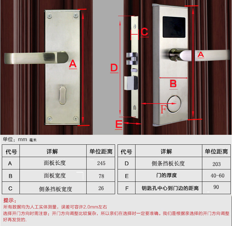 Перед определением блокировки двери покупки,тыОбязательно отличайте и подсчитайте направление открытия двери и толщины двери дверной двери и толщины двери,Предоставьте эту информацию для нас онлайн -персонал, чтобы начать производство и чулок!