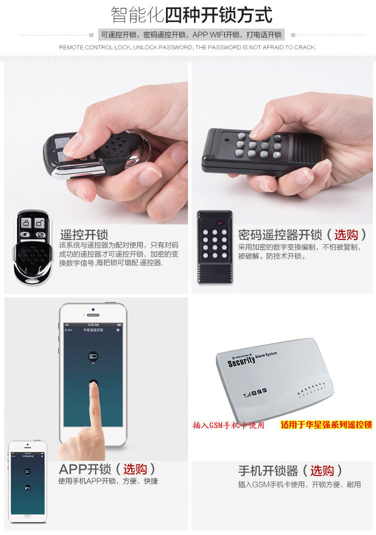 | Цвет: | Стандартная модель дистанционного управления (с четырьмя пультами дистанционного управления), Дистанционное управление+модель Bluetooth, Дистанционное управление+мобильный телефон удаленно разблокирован, Шлюз (оснащен пультом дистанционного управления) |