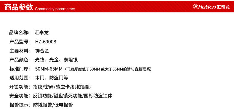 Huitailong Pingsprint Lock Home Smart Door Lock Electronic Brush Lock Hotel Code Lock Anti -Mathe Lock 69008