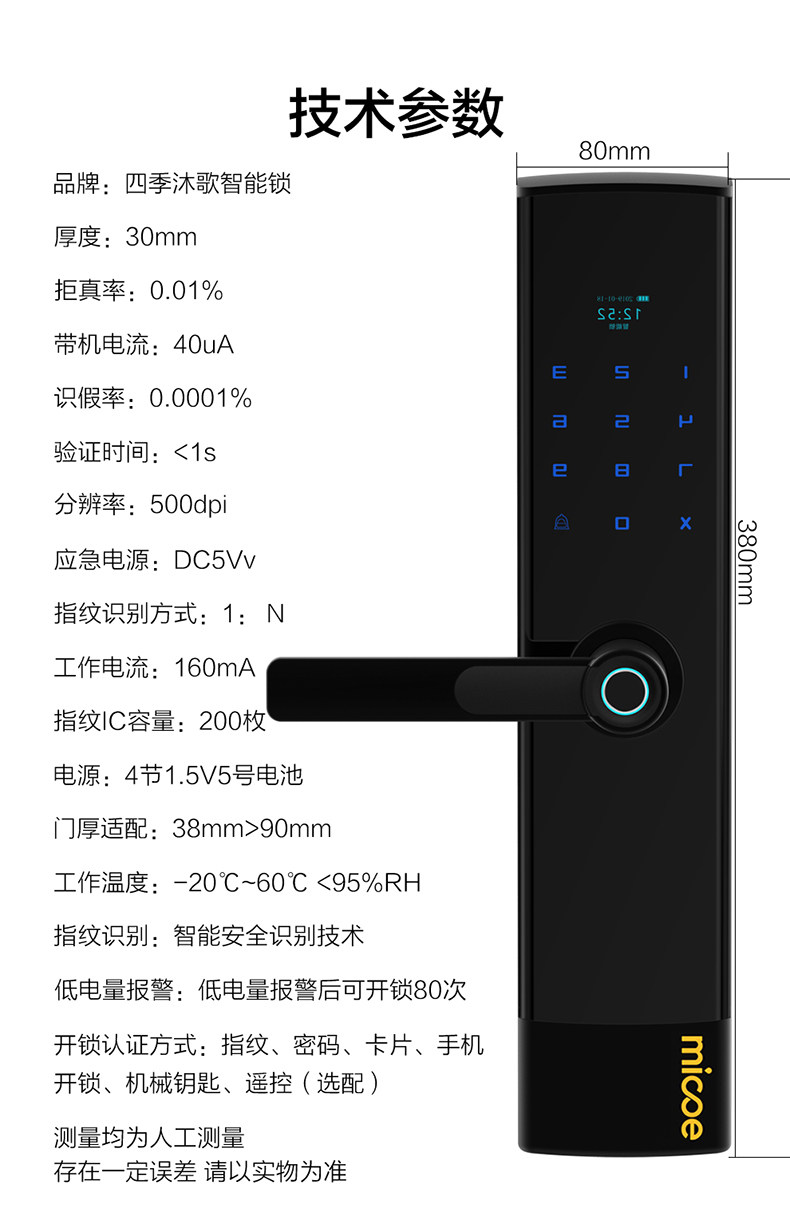Four Seasons Muge Finger -отпечатки Home Используйте антиофтефтебную дверь Smart Lock Lock Lock LCD -дисплей Электронный блокировка ZNS01
