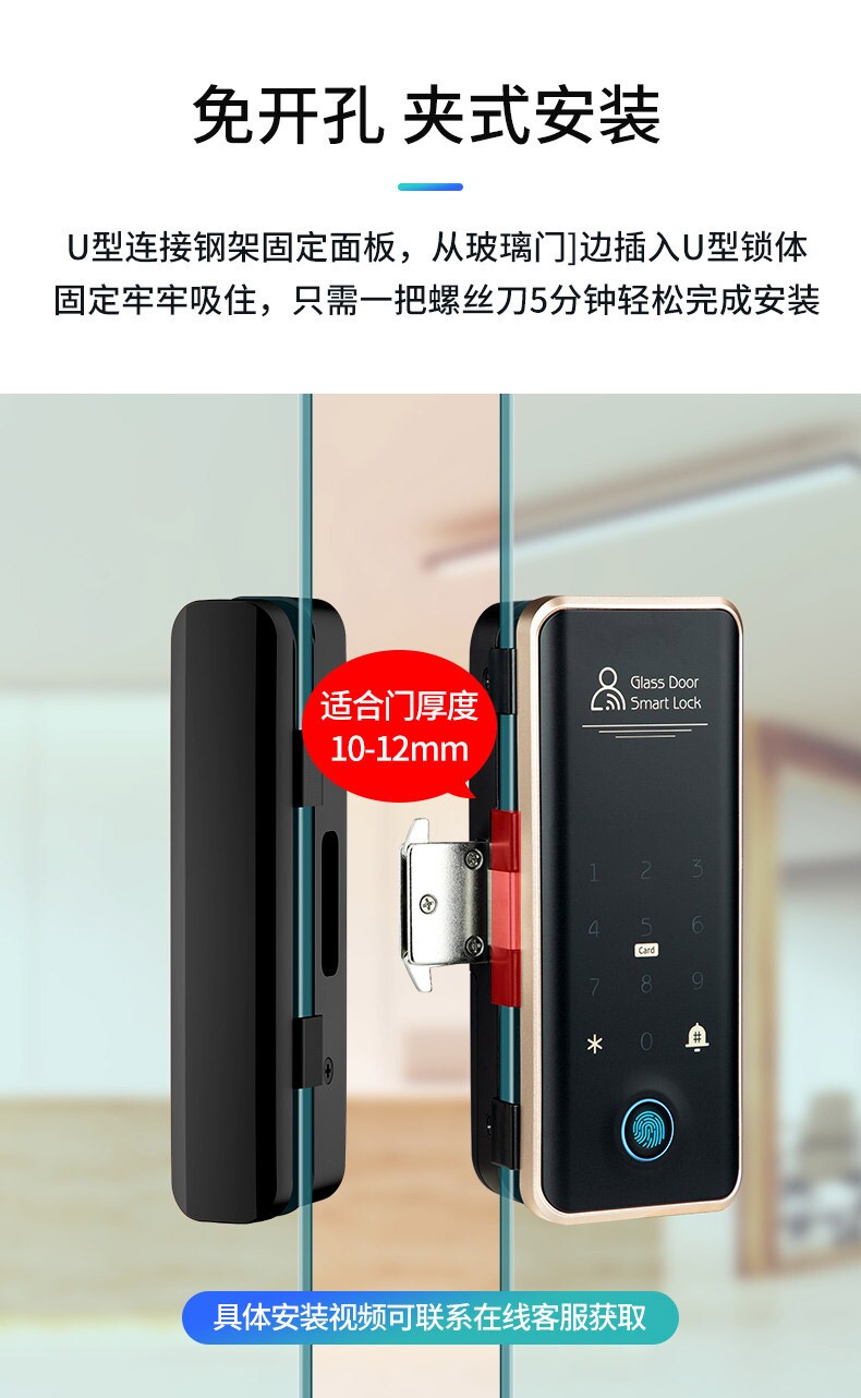 Замок для стеклянной двери с отпечатком пальца TTLOCK Замок Tongtong TUYA граффити умный замок с паролем для офиса двойная дверь без перфорации