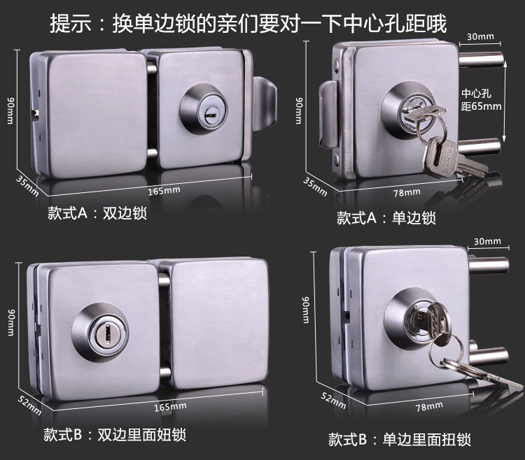 Стеклянный двусторонний односторонний замок с отверстиями