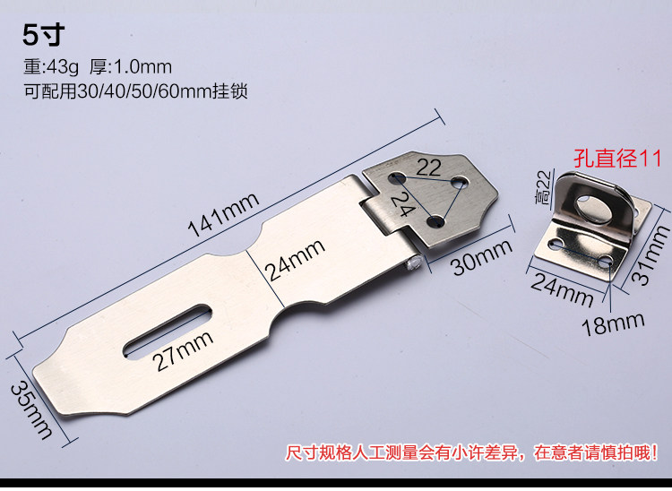 - 5 -INCH VINGING LOCKМожет быть оснащен 30 мм,40 мм, 50 мм, 60 мм висящий замок