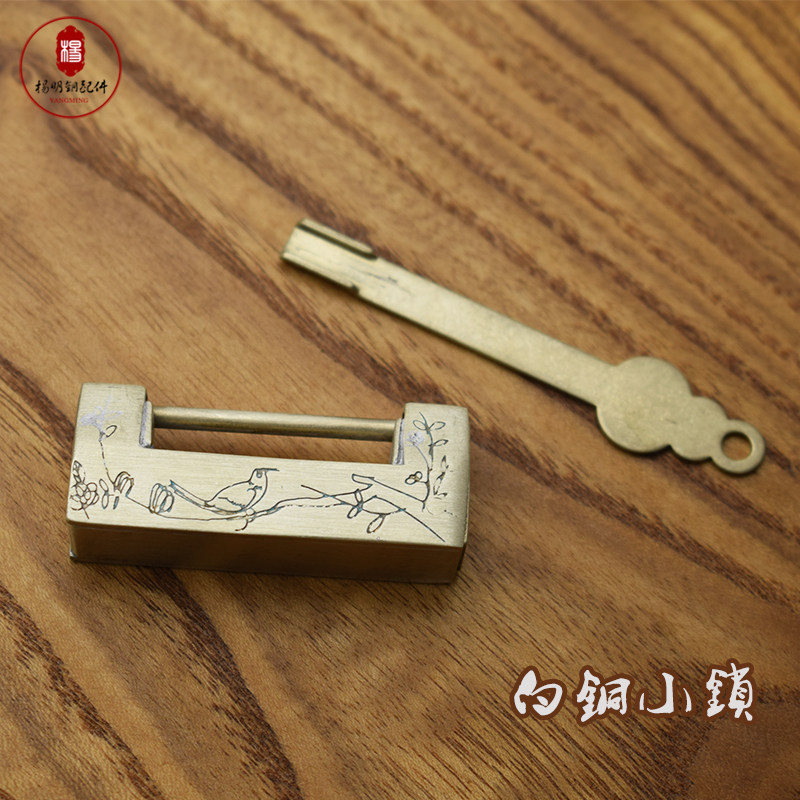 Антикварная медная блокировка чистая медная старая -модная все -то -коппер белый медный замк. Домохозяйная ржавой -надежная ювелирная коробка Деревянная коробка пряжка
